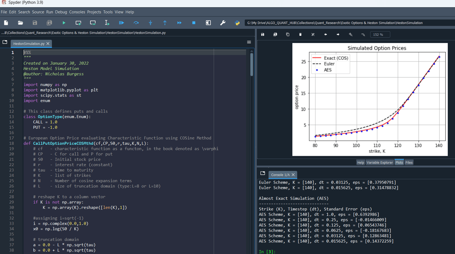Keywords: Exotic Options, Smile, Skew, Stochastic Volatility, Heston Model, Simulation, Monte Carlo, Euler Discretization, Exact Simulation, Almost Exact Simulation, Negative Variance, Absorption, Reflection, Cholesky Decomposition, Correlation, Integral Freezing, Pricing, Valuation, Python