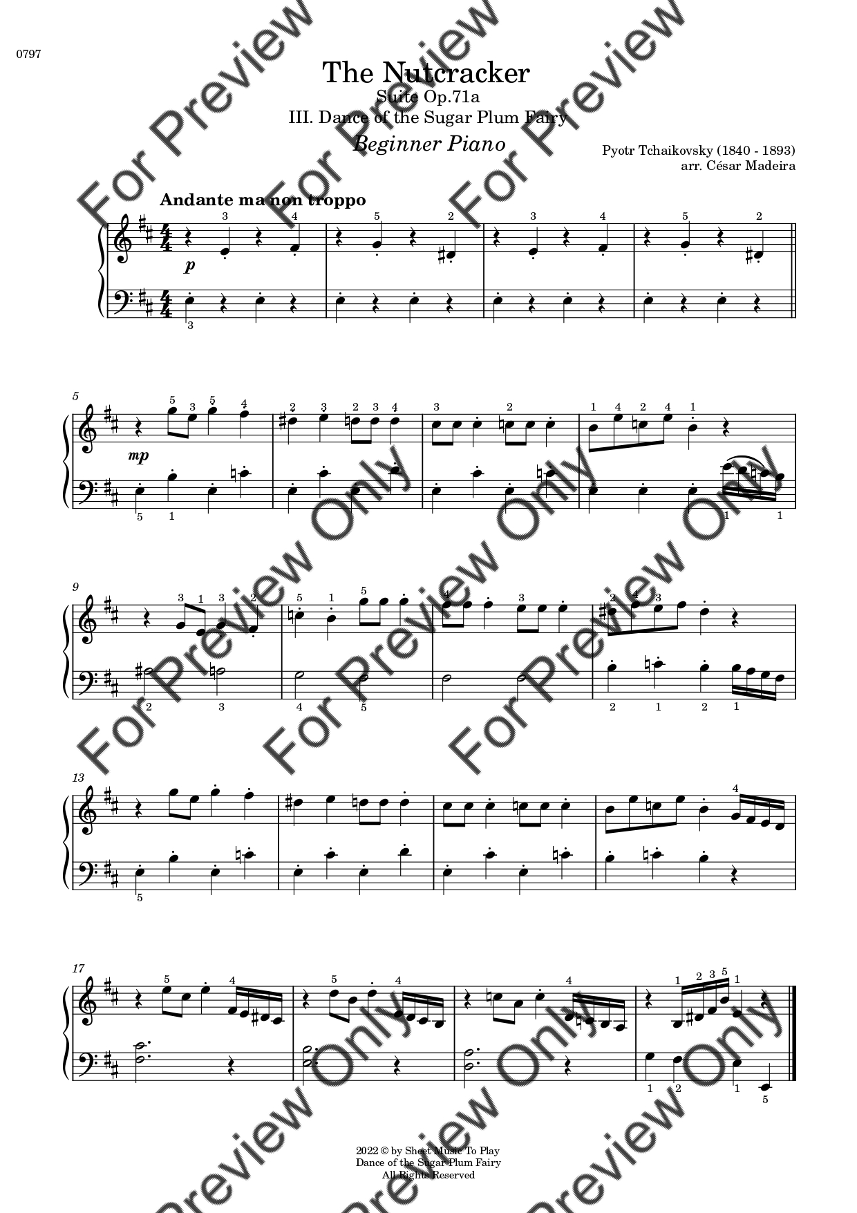 Dance of the Sugar Plum Fairy (from The Nutcracker) by Pyotr Tchaikovsky. Arrangement for Beginner/Easy Piano. With Full Score. Have fun!