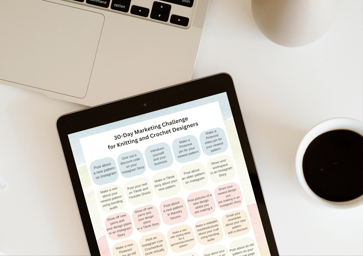 This 30-Day Marketing Challenge was created to give you useful content creation prompts to help you market and promote your patterns, whether you design crochet or knitting patterns.