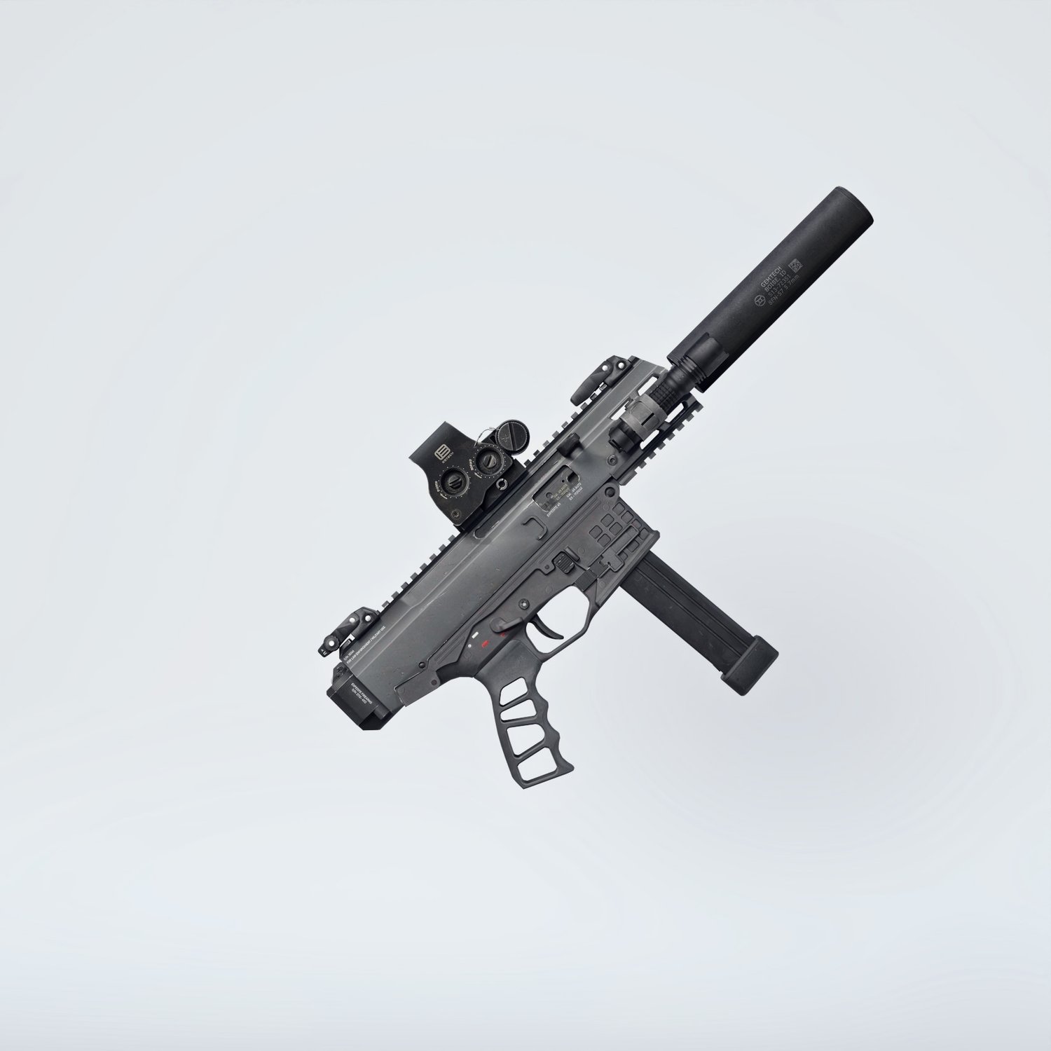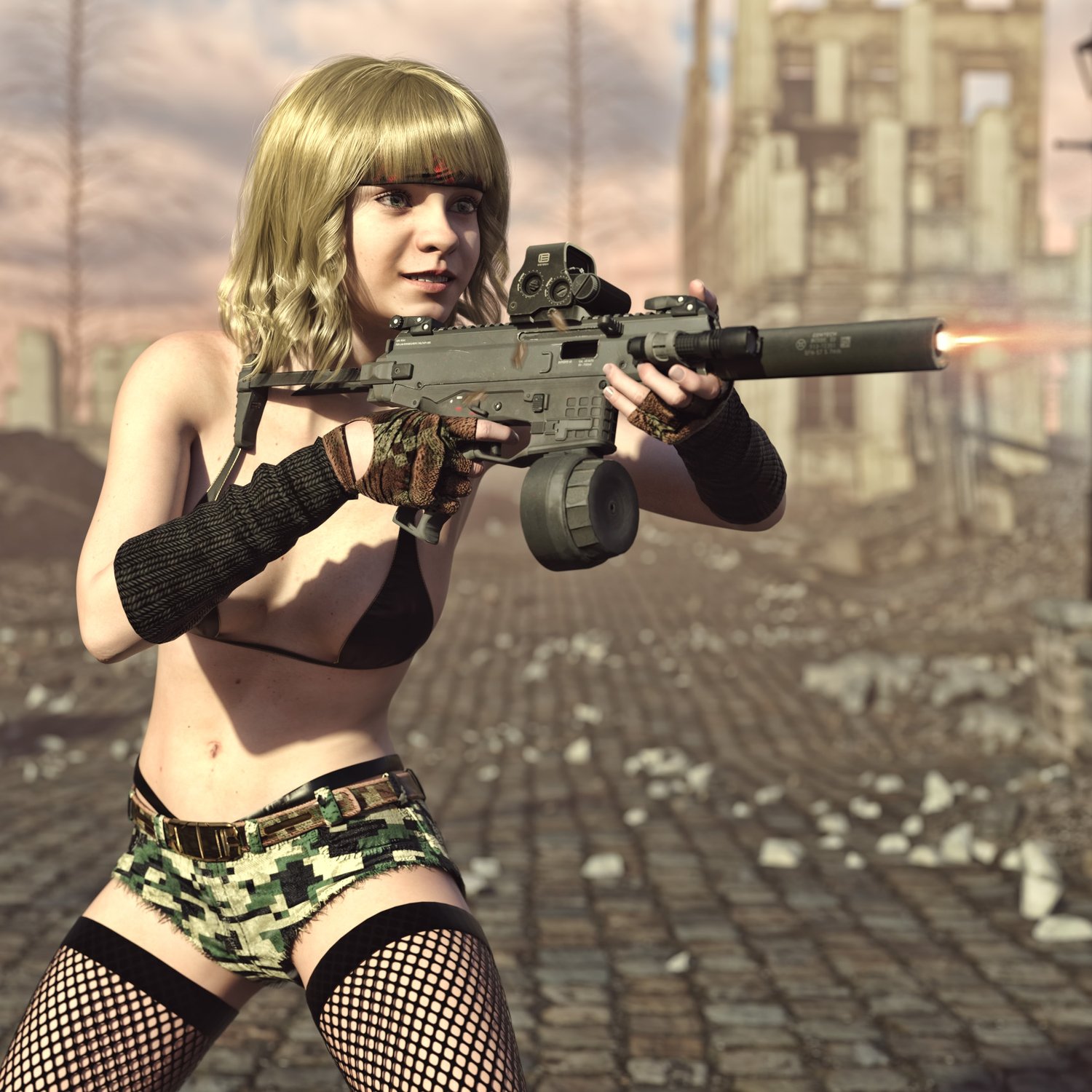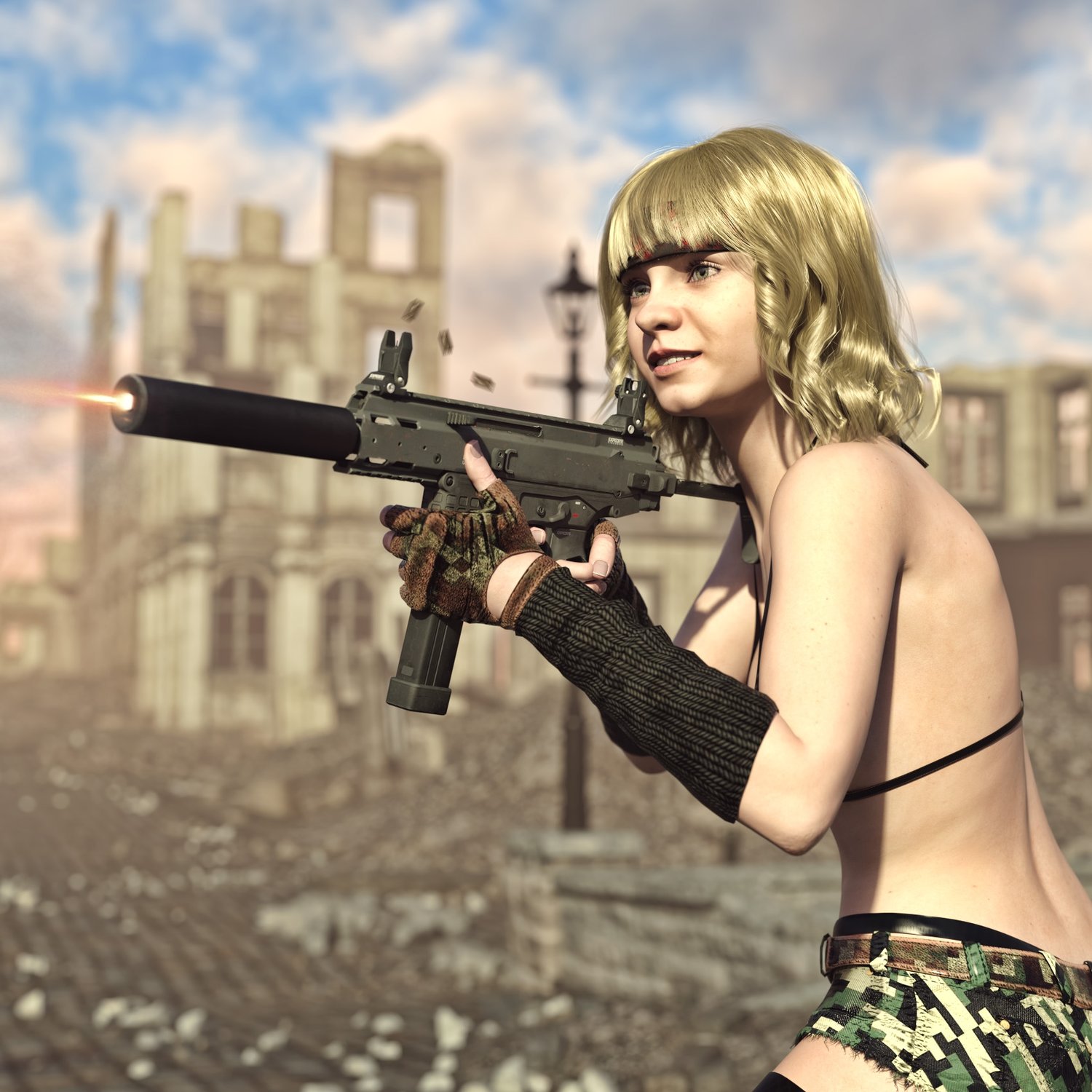 A super cool SMG base on a real APC SMG. This variant is a short version, with some cool accessories to modify your gun for cool pics. Converted and rigged for use with DAZ. Trigger, safety, bolt etc also rigged for more realistic pictures. Includes a silencer, a red dot, a regular mag and a drum mag for more dakka :D and some other accessories for various porpoises and pictures. Since parts are rigged, the gun can be used as just the basic configuration or an upgraded variant. Stock also folds or can be hidden.