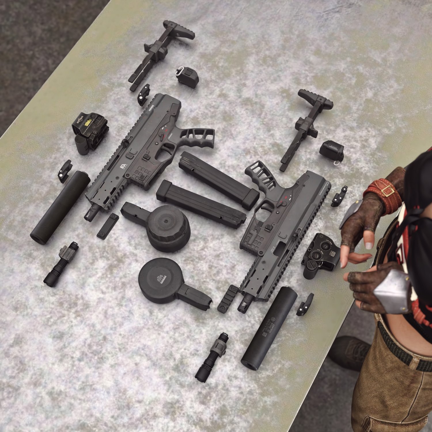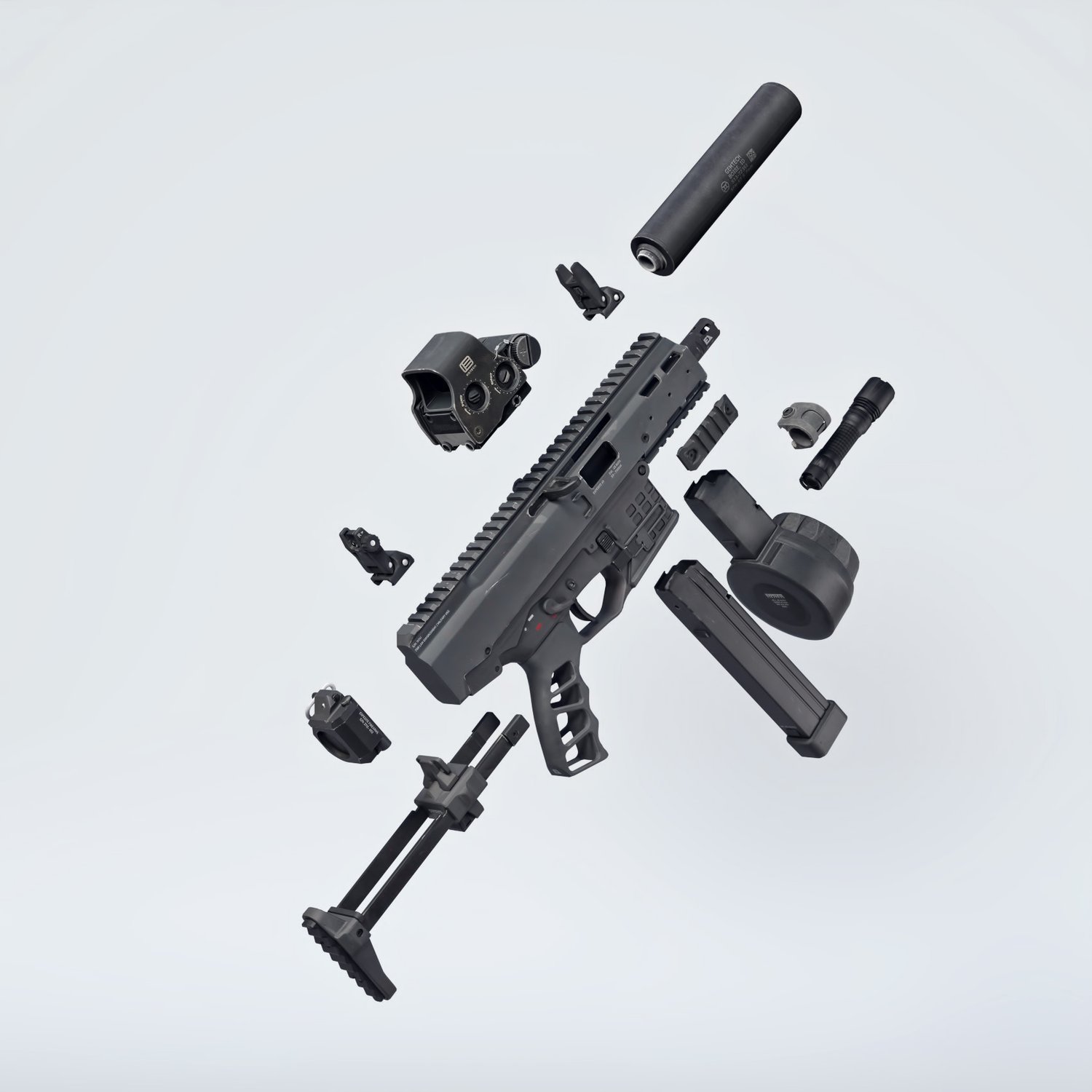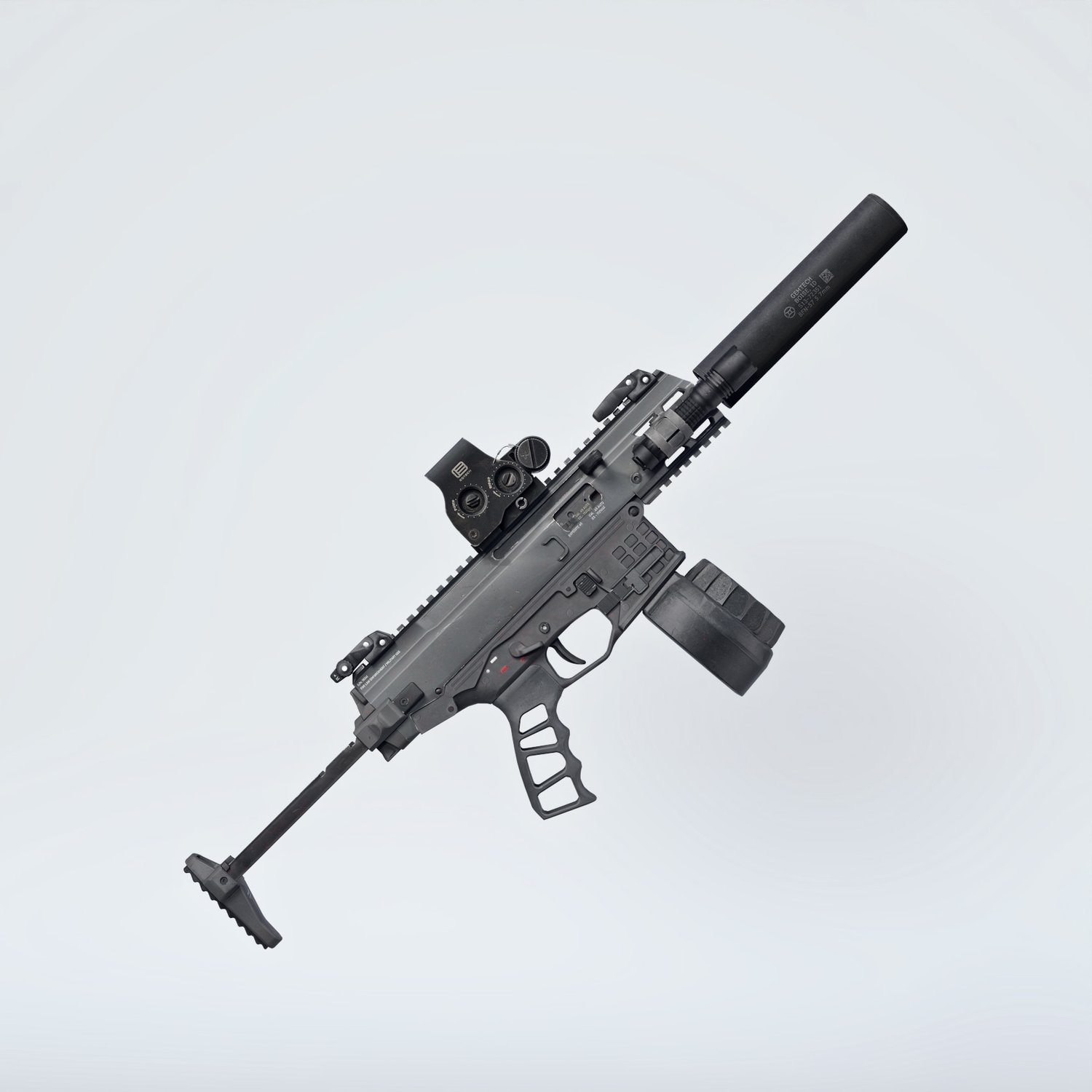 A super cool SMG base on a real APC SMG. This variant is a short version, with some cool accessories to modify your gun for cool pics. Converted and rigged for use with DAZ. Trigger, safety, bolt etc also rigged for more realistic pictures. Includes a silencer, a red dot, a regular mag and a drum mag for more dakka :D and some other accessories for various porpoises and pictures. Since parts are rigged, the gun can be used as just the basic configuration or an upgraded variant. Stock also folds or can be hidden.