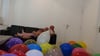 Flo and me blow to pop balloons