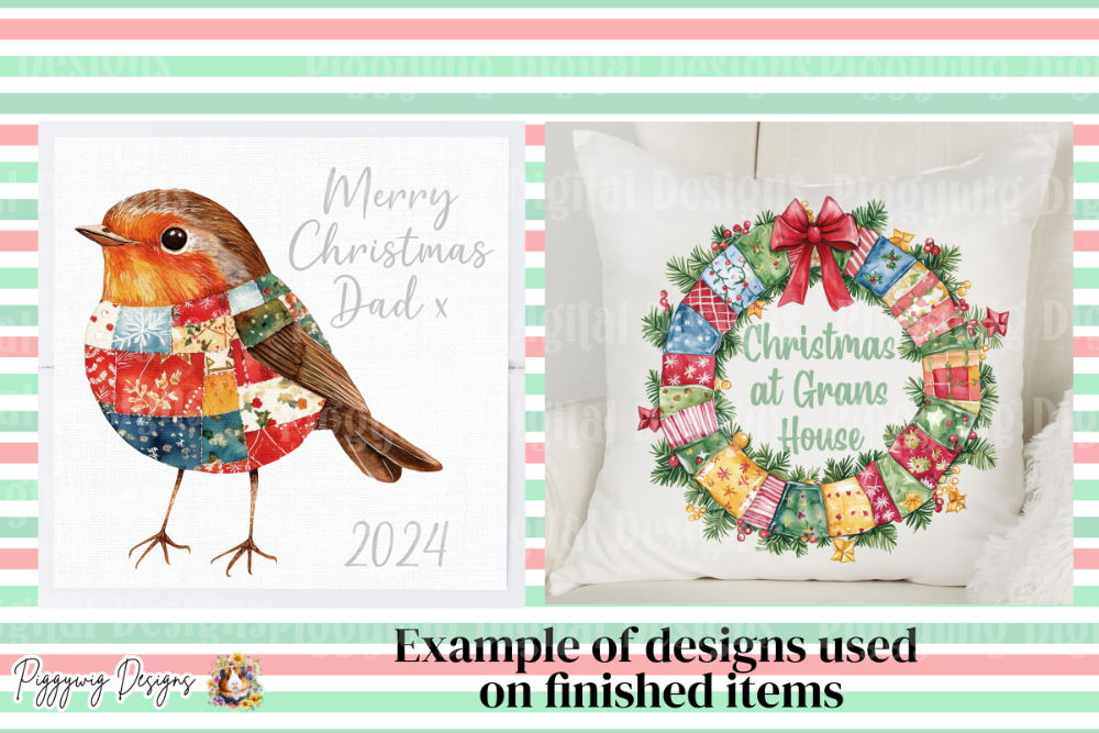 Beautiful watercolour style, patchwork effect Christmas clipart.