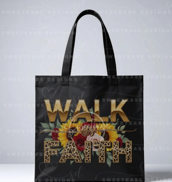 This bold, statement typography design blends faith, strength, and glam in one powerful visual. “Walk By Faith” is styled in oversized gold lettering, paired with leopard print accents that add depth and confidence to the design.