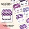 10 Purple Heart Cash Envelopes With Budget Tracker | Printable Purple Valentine's Day Cash Envelopes With Expense Tracker | Purple Hearts Cash Stuffing Envelope Set