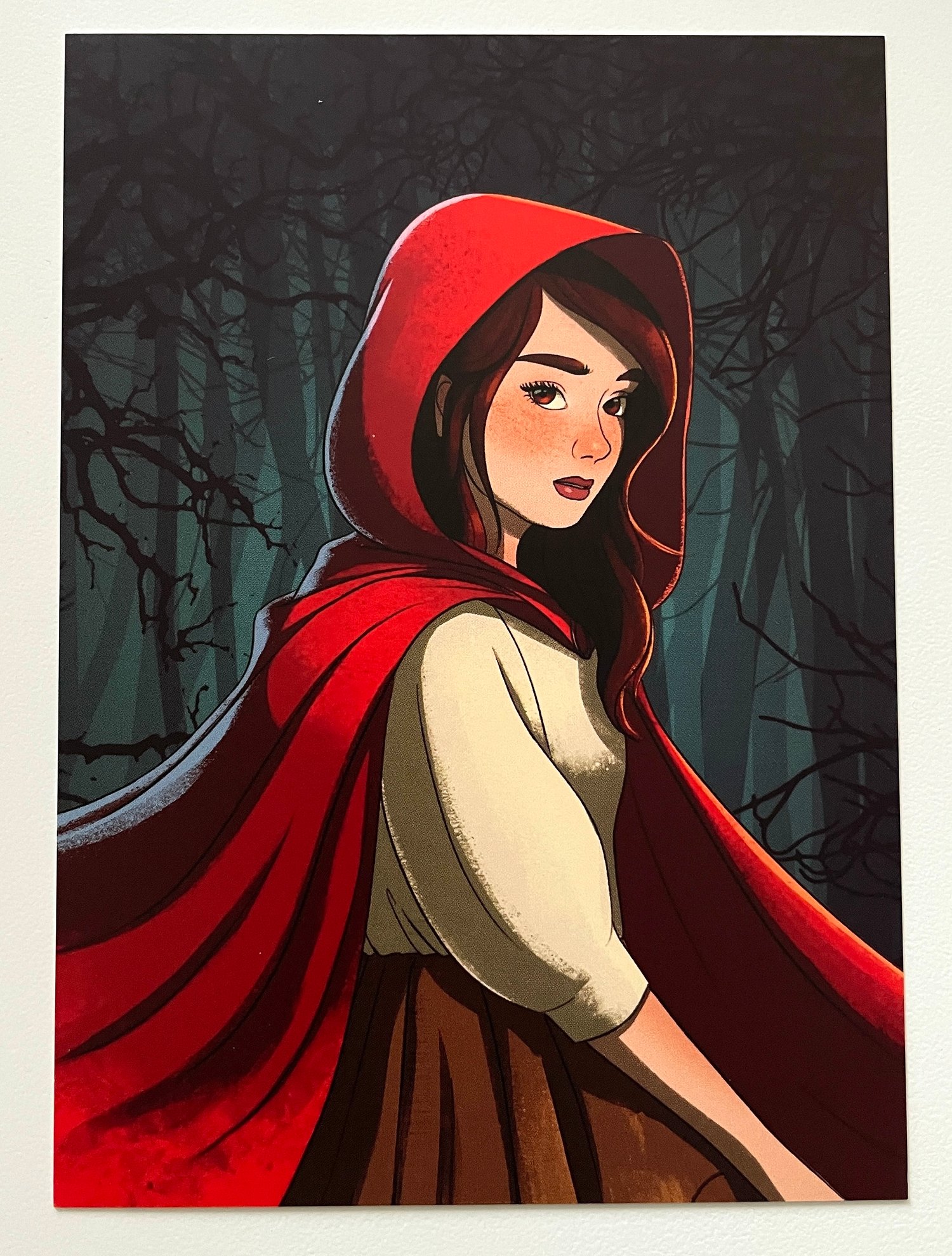 For fairy tale fans, a perfect compliment to Seeing Red: A Fairy Tale Retelling of Little Red Riding Hood. A 5x7 matte print of Claret, the heroine of Seeing Red.