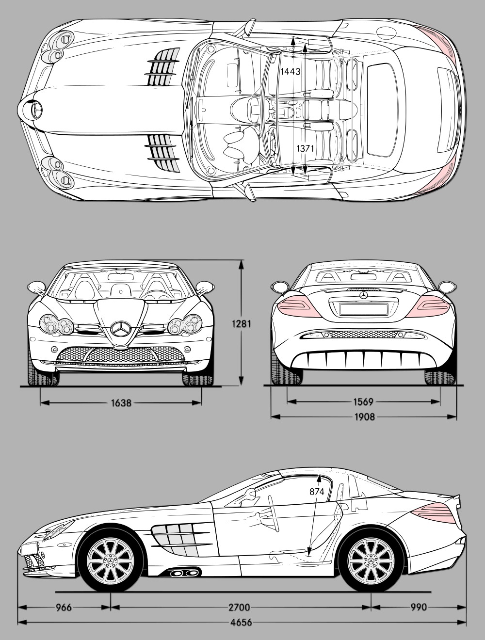 Mercedes SLR McLaren Roadster 2008 Car Blueprint