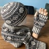 A cosy, stranded accessories collection of mitts, cowl and hat. Buying the collection represents a 16% saving on all three patterns purchased separately.