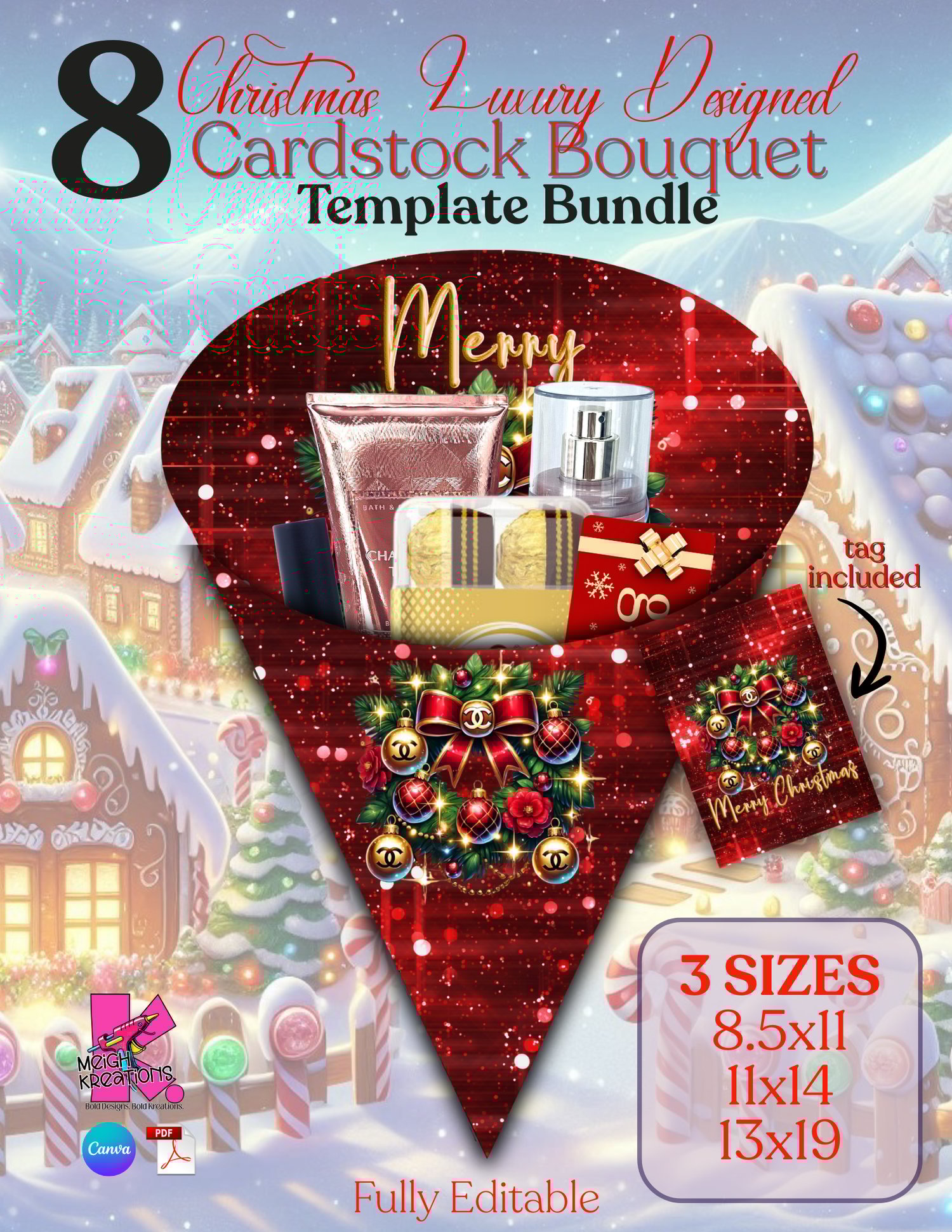 8 Christmas Luxury Designed Cardstock Bouquet Template Bundle