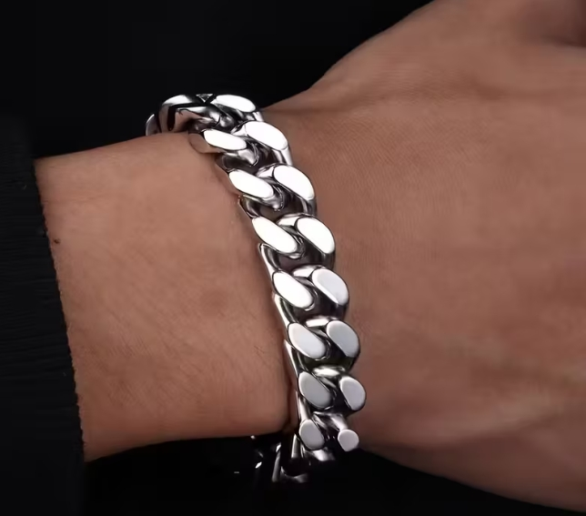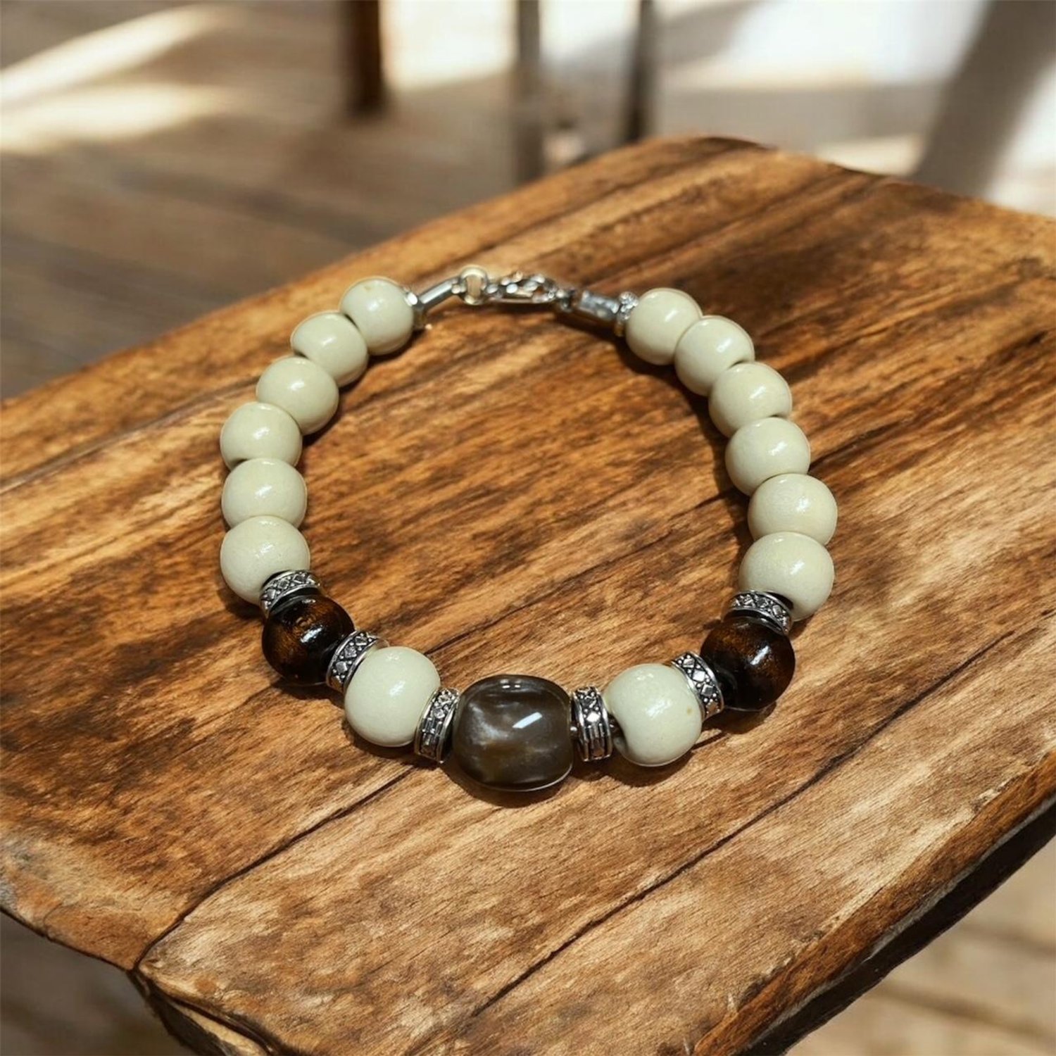 Stylish two-tone beaded bracelet for men or women.