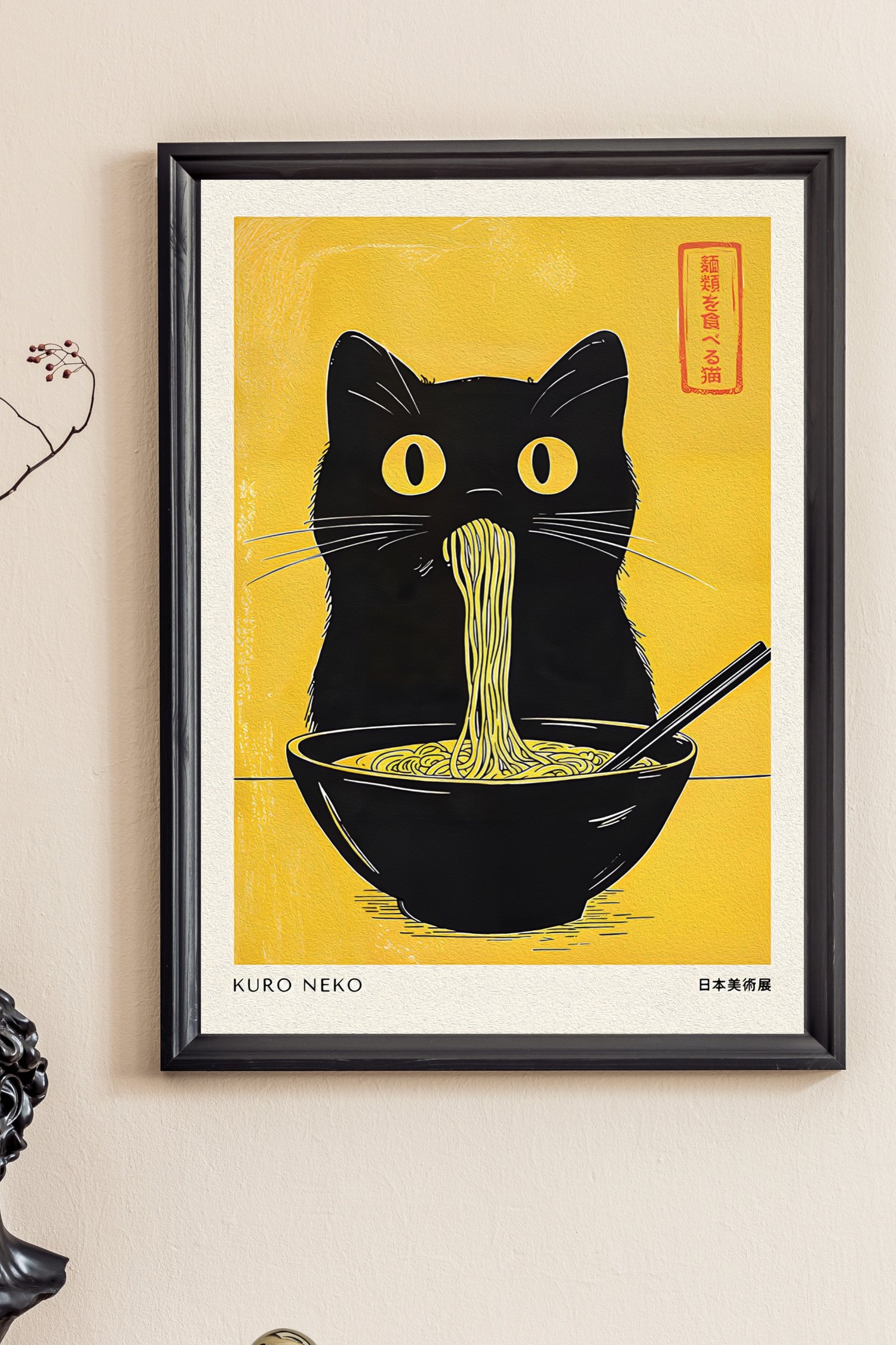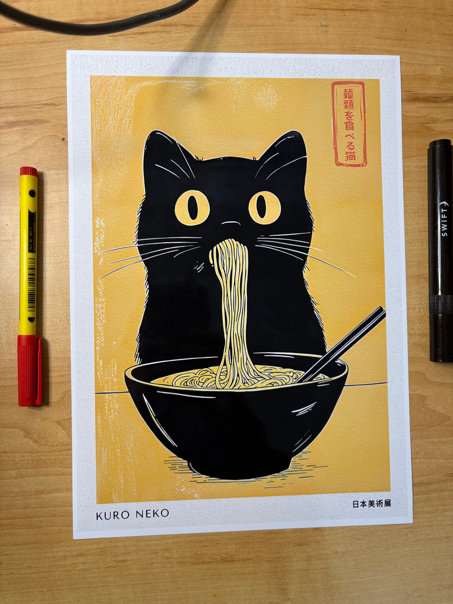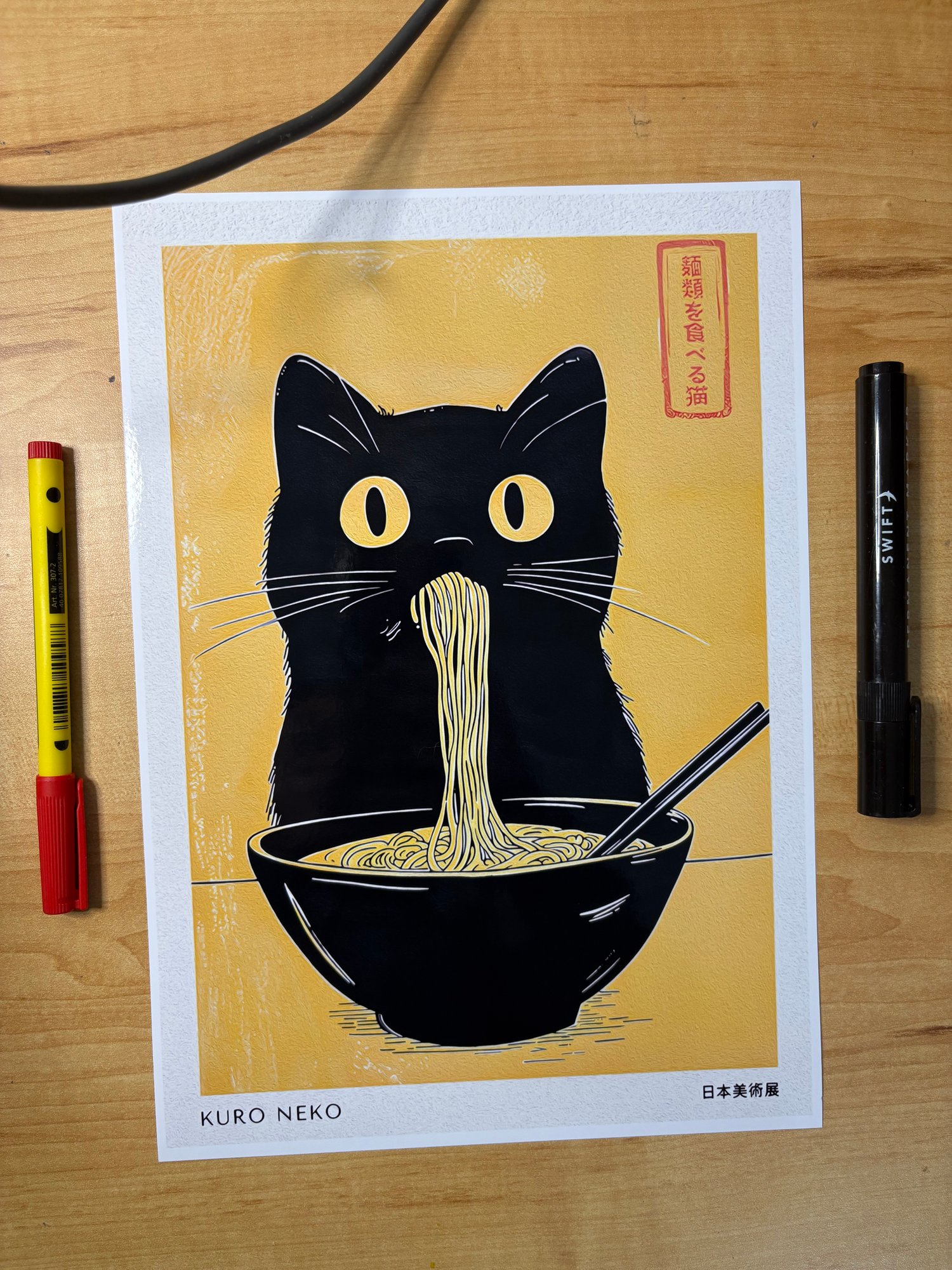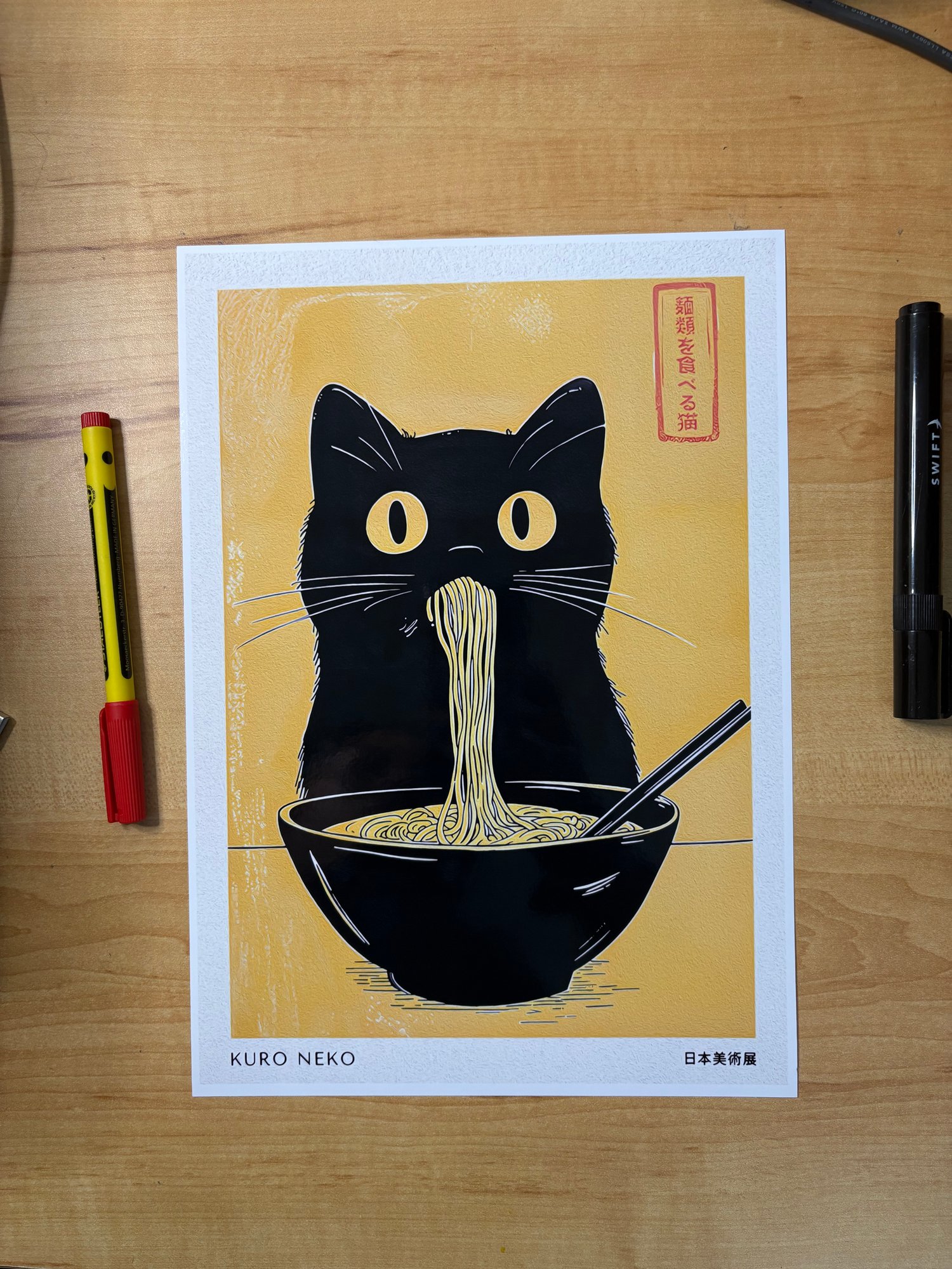 A4 Print Kuro Neko Ramen Cat|Physical Copy