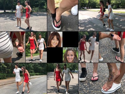 Bridget is clopping down steep stone steps in a park when she trips severely spraining her ankle. Pulling her boot off she massages her nyloned foot, but soon pulls that off to because its putting too much pressure on her aching foot. Now with her one foot bare she needs to get help and finds herself hopping through town on her one good leg occasionally putting her bare foot down on the ground.