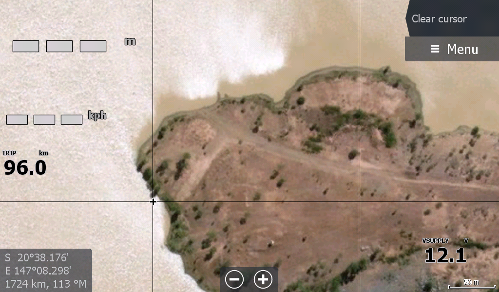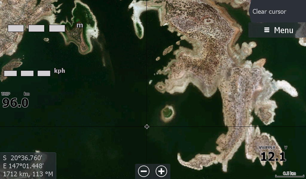 Depending on current water levels at the Lake, the Lowrance Chart Plotter could display some landmass in areas that you will be boating over.