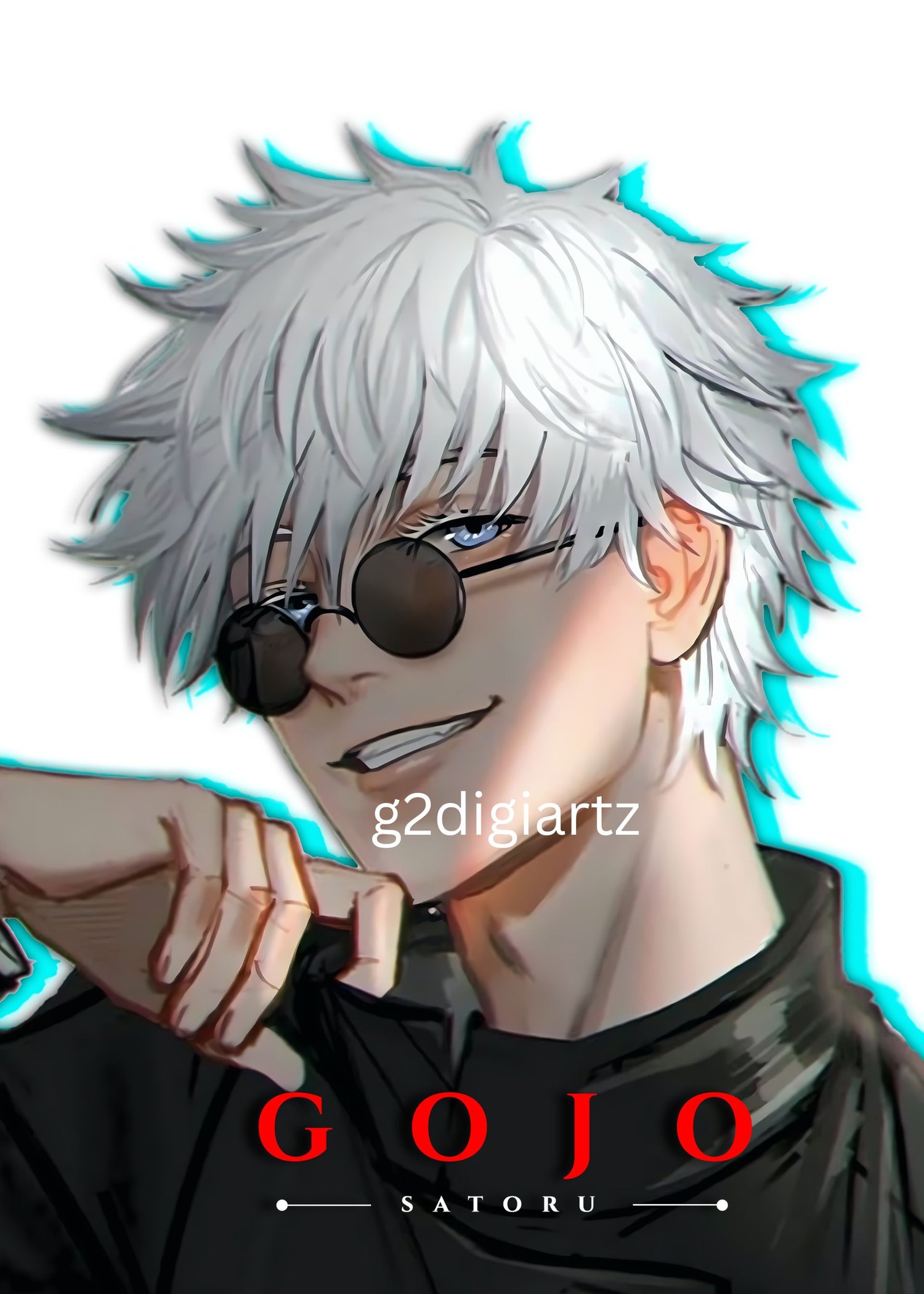 Crafted with meticulous attention to detail and rendered in stunning 300DPI resolution, this poster captures the essence of Gojo Satoru's commanding presence. From his piercing gaze and iconic attire, every aspect of his character is brought to life with vivid clarity.