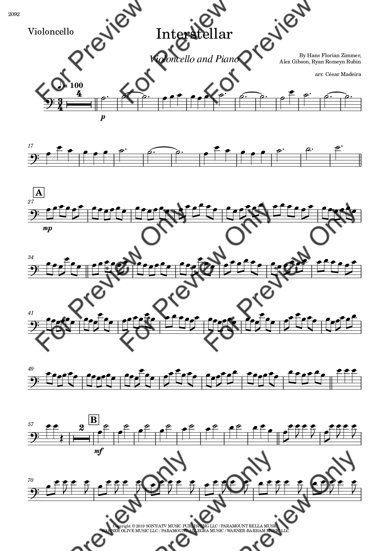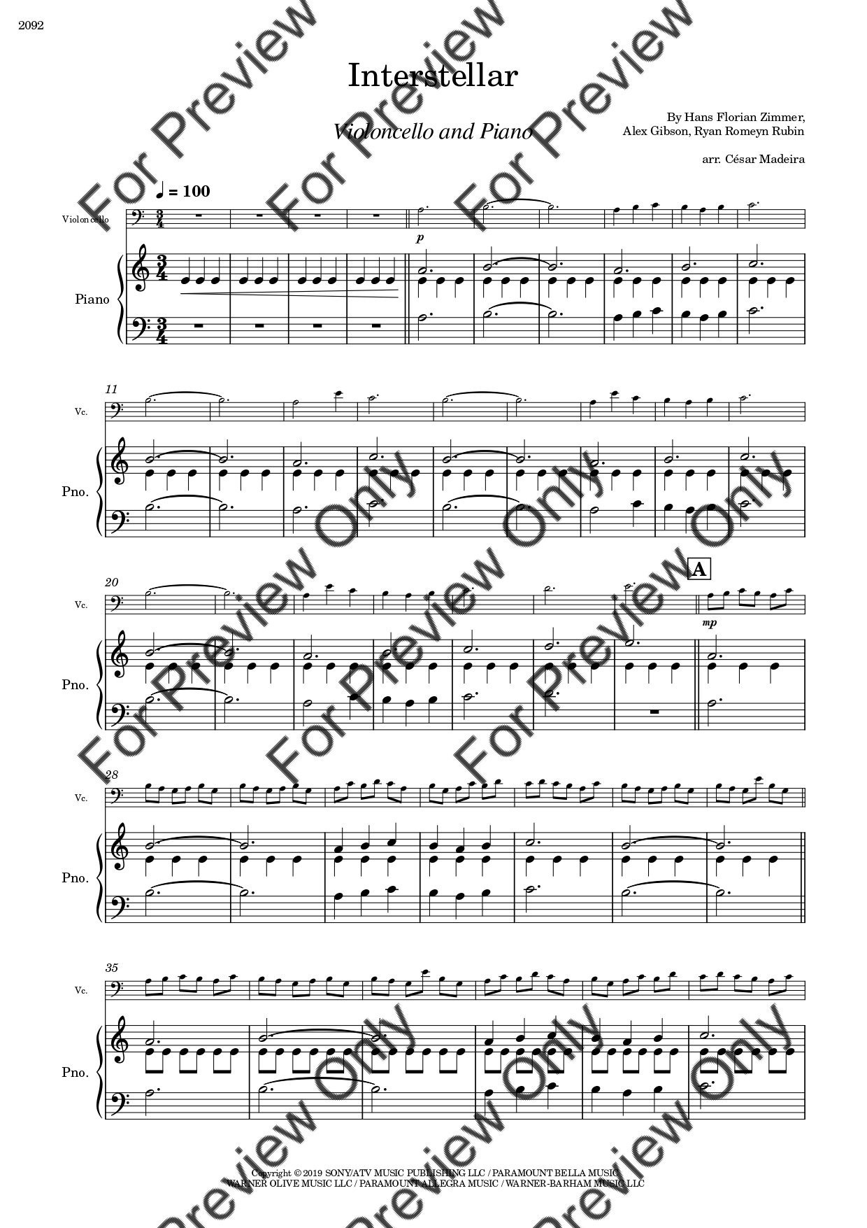 Interstellar Main Theme by Hans Zimmer. Arrangement for Violoncello and Piano. With Full Score and Individual Parts. Have fun!