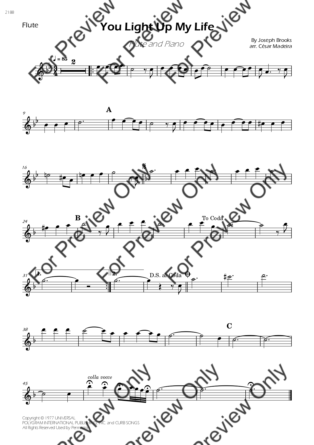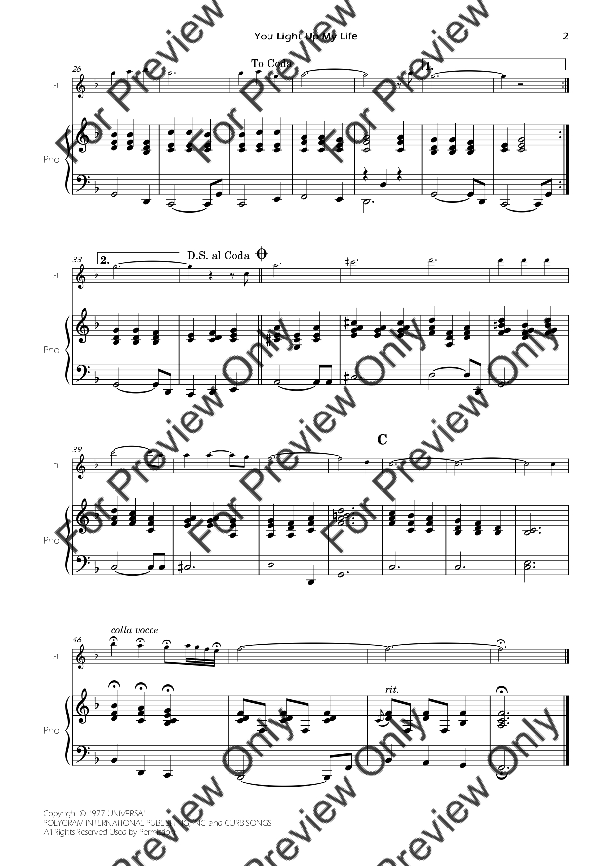 You Light Up My Life by Debby Boone. Arrangement for Flute and Piano. With Full Score and Individual Parts. Have fun!