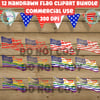 Hand Drawn Vintage America Flag Clip Art 12 Image Bundle