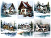 Winter at the Lake – 15 Watercolor Snow Chalet Art Prints