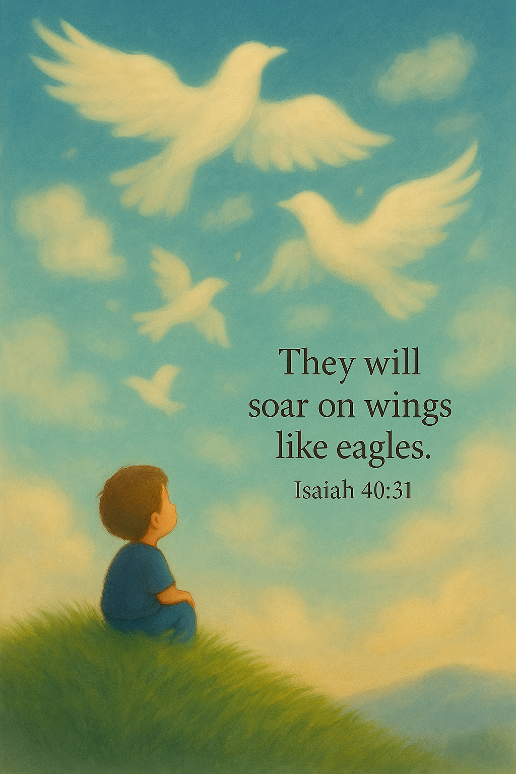 Lift hearts and spirits with this Christian Scripture Wall Art featuring Isaiah 40:31, illustrated with a child gazing at soaring birds beneath a radiant sky. This printable is ideal for faith-based homeschool decor, devotional kits, and ministry care packages, offering a visual and spiritual reminder that those who hope in the Lord will rise with strength, grace, and purpose.