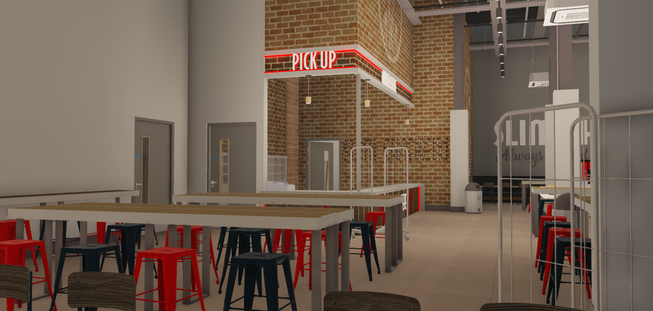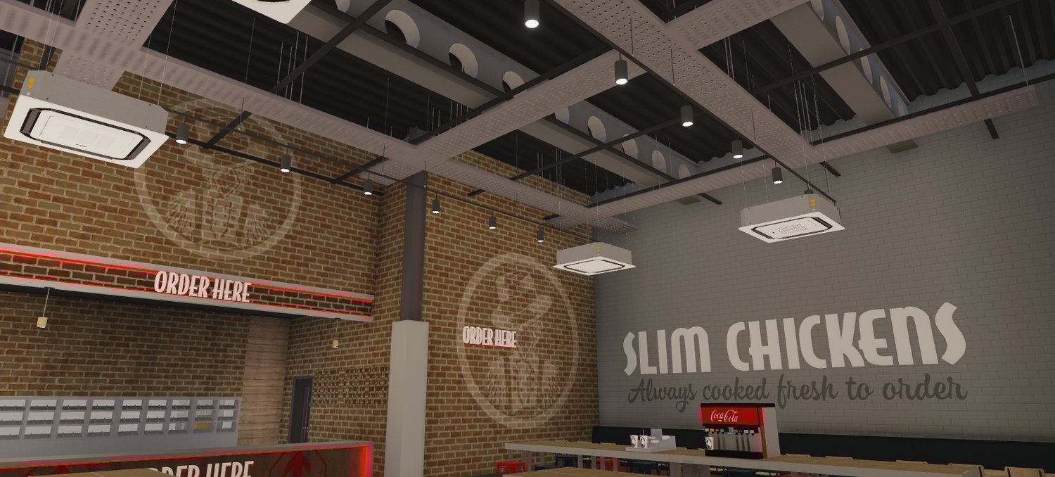 This Slim Chickens map is a detailed, high quality map, which includes an interior, staff room, unfurnished kitchen, and a fully finished exterior.