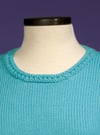 Don’t be intimidated by the beautiful scalloped edging on this pullover! It’s all knit (no crochet) and it looks far more complicated than it is; you don’t have to be a master knitter to do it! The waist is nicely shaped to bring attention to your figure and flatter your hips – be sure to use a yarn with a lot of body so the shaping will look its best.