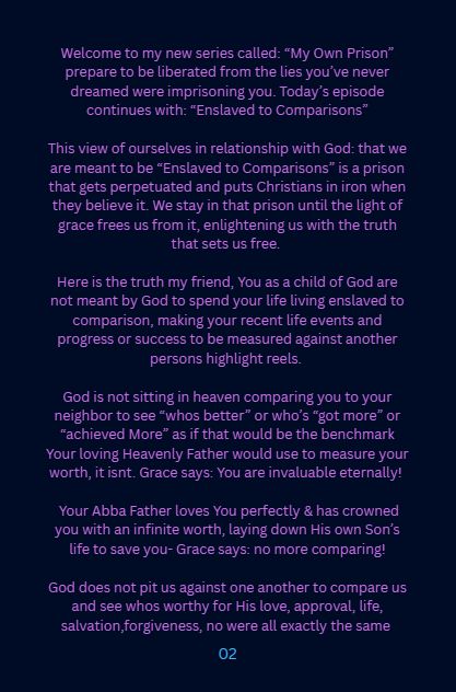 Author Timothy Virge's Devotional series: My Own Prison Episode Thirty Seven: Enslaved to Comparisons