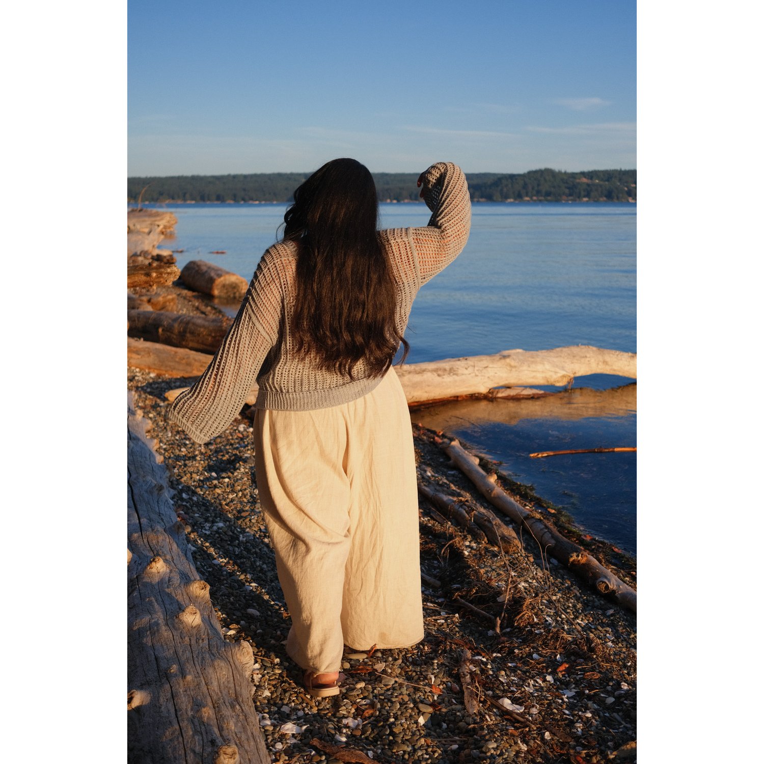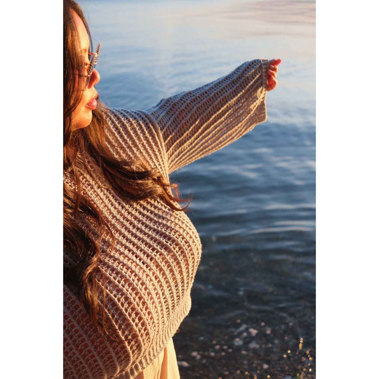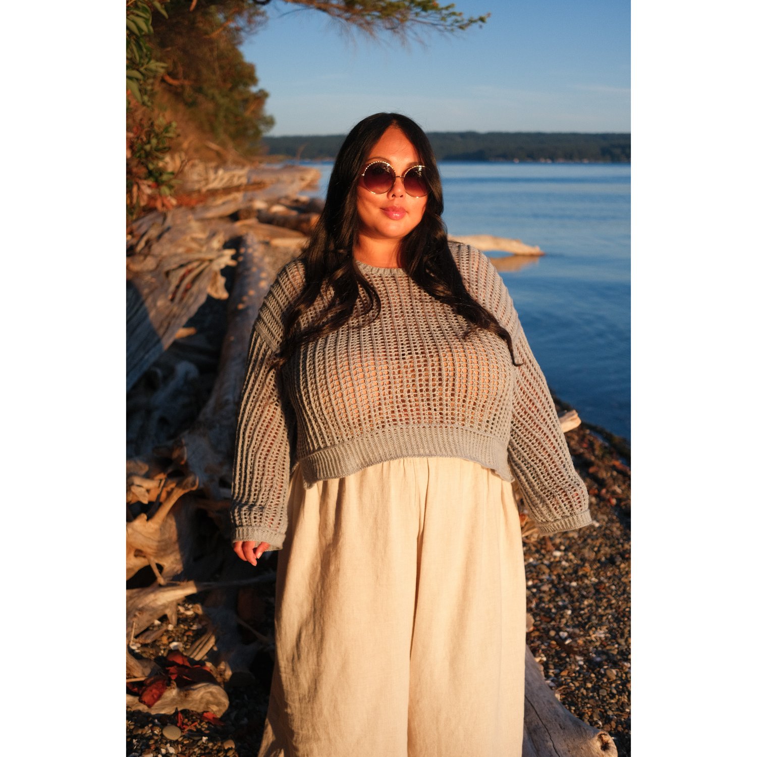 For the nymph in all of us, a net-like lace pullover straight from the depths, with long dripping sleeves and mermaid braid detailing. Be the mysterious water creature you wish to see in this world.