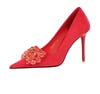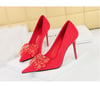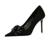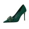 Description: Banquet high heels women's stiletto suede shallow mouth pointed toe gem rhinestone bow shoes Toe shape: pointed toe