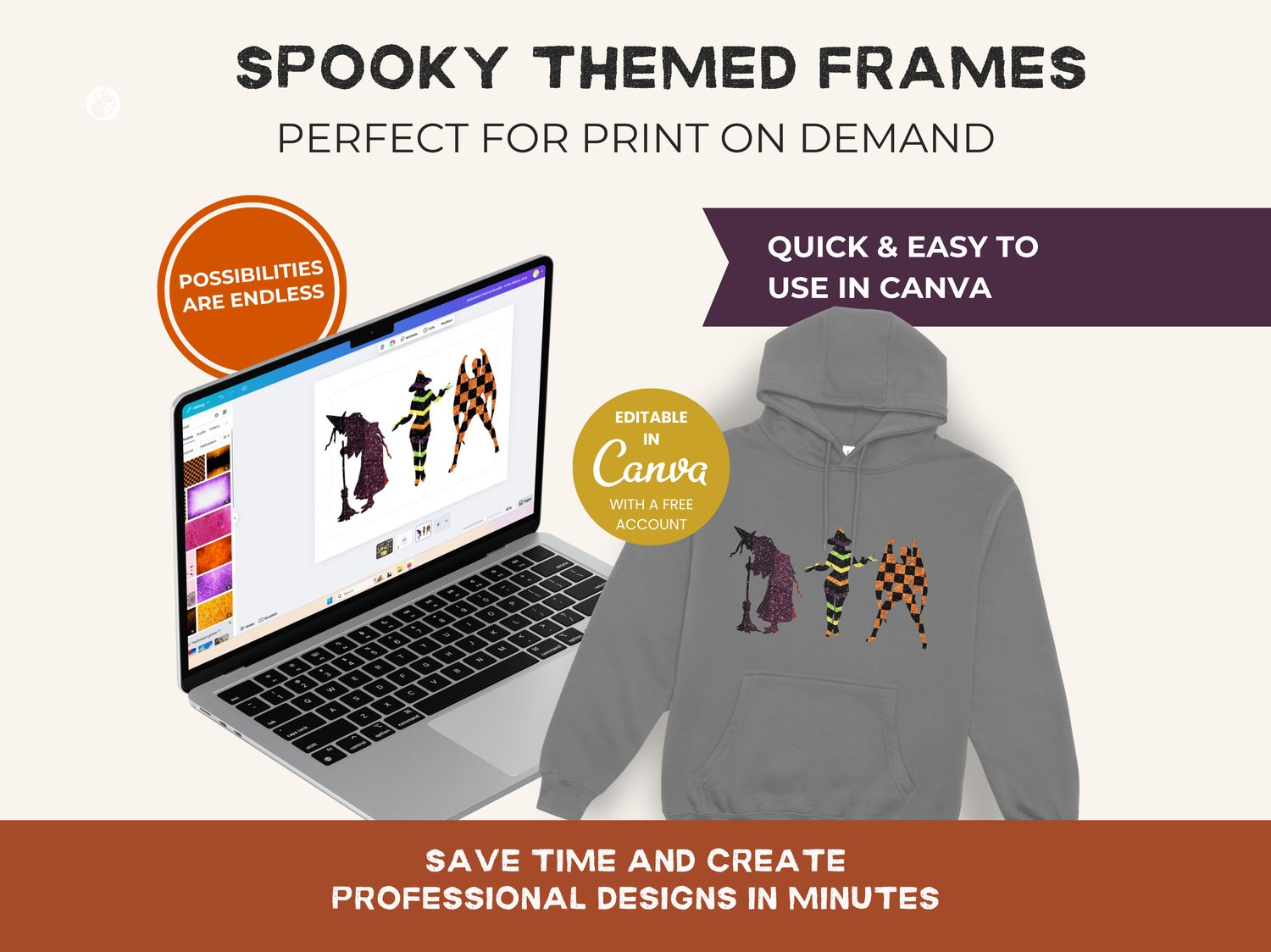 - 10+ custom Canva frame elements in spooky Halloween shapes (see images)