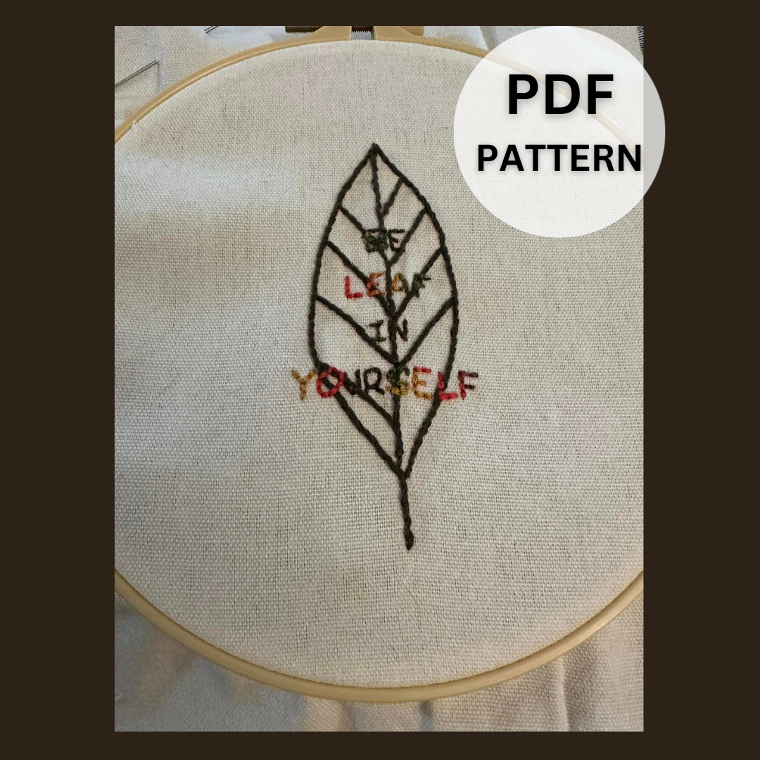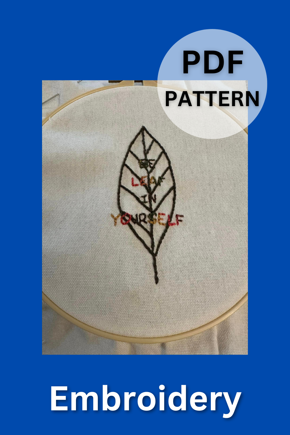 Be Leaf in Yourself" Inspirational Leaf Hand Embroidery Pattern