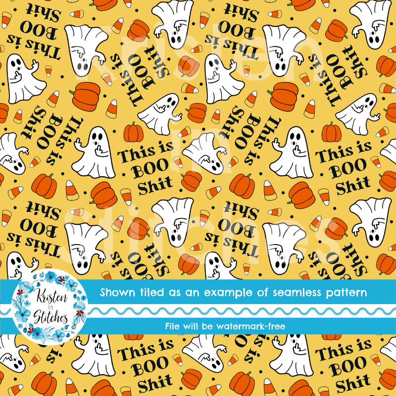 This is Boo Shit Sweary Sarcastic Halloween Ghosts Seamless Pattern