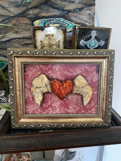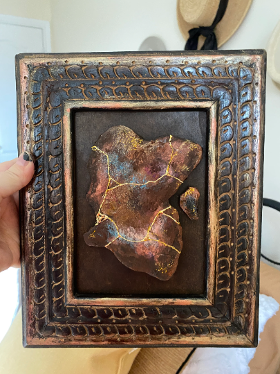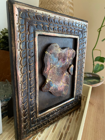 African Raku Kintsugi, Framed Kintsugi Art, Faux Kintsugi Meaningful Rustic Small Painting, Kintsukuroi Framed Art, Mindful Yoga Gift