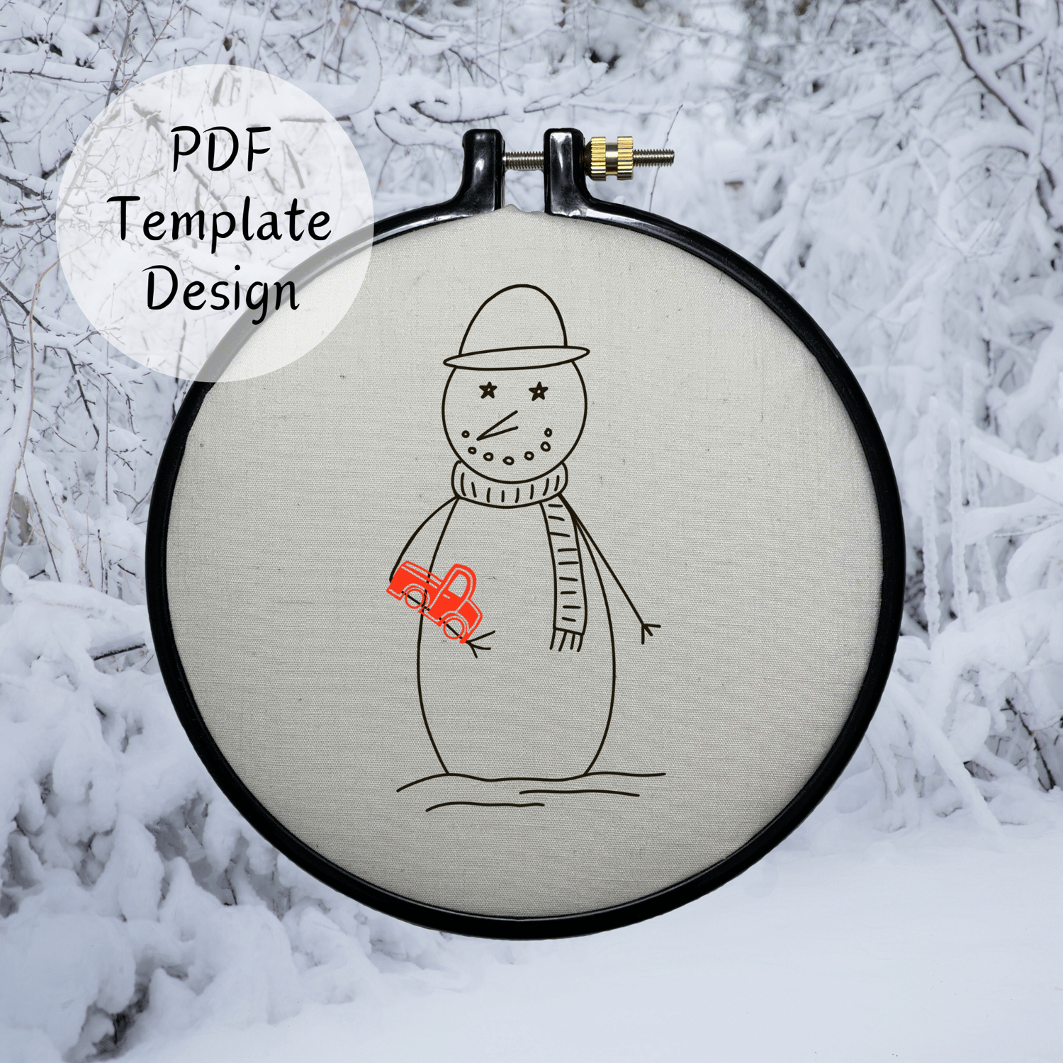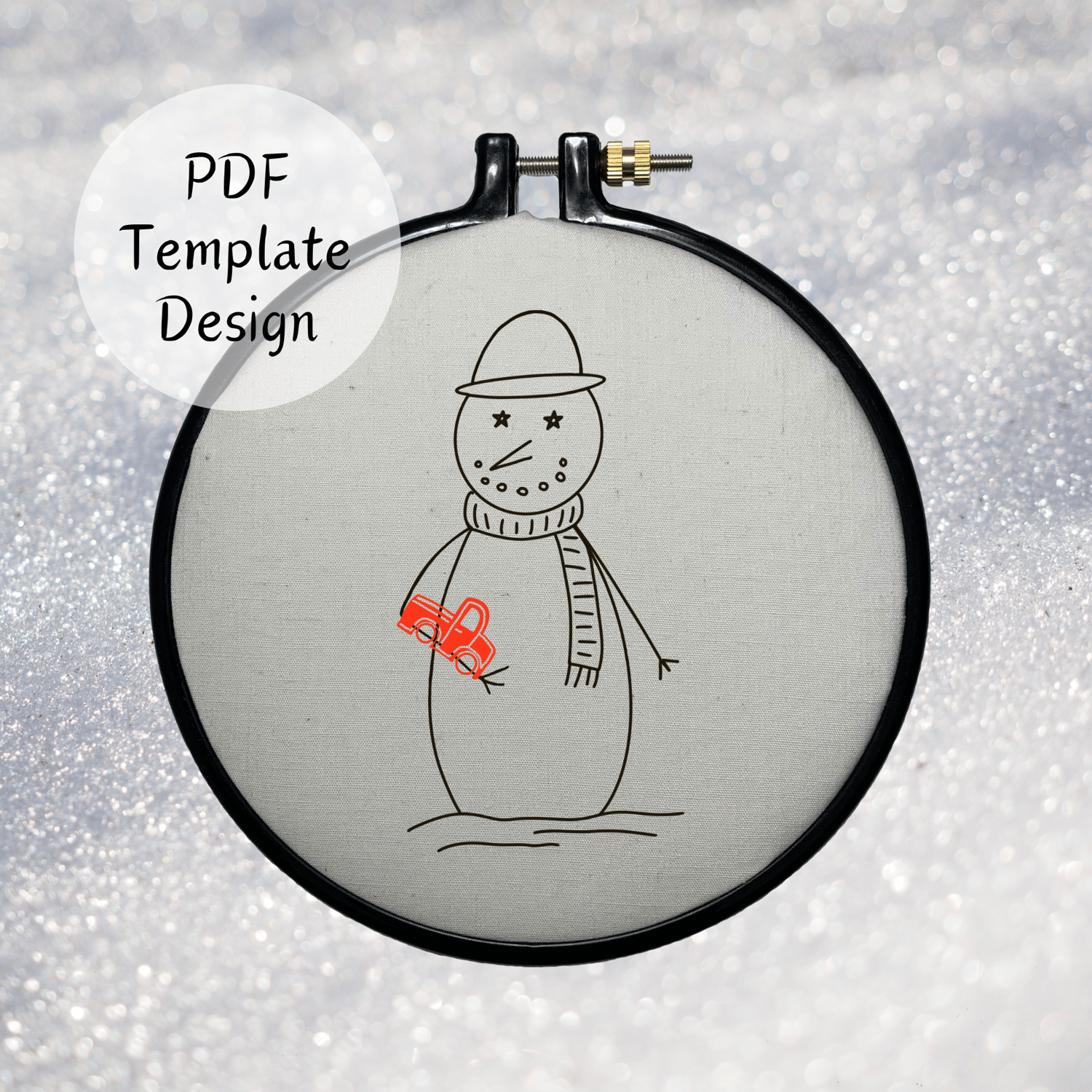 Snowman With Toy Truck Hand Embroidery Pattern - DIY Design
