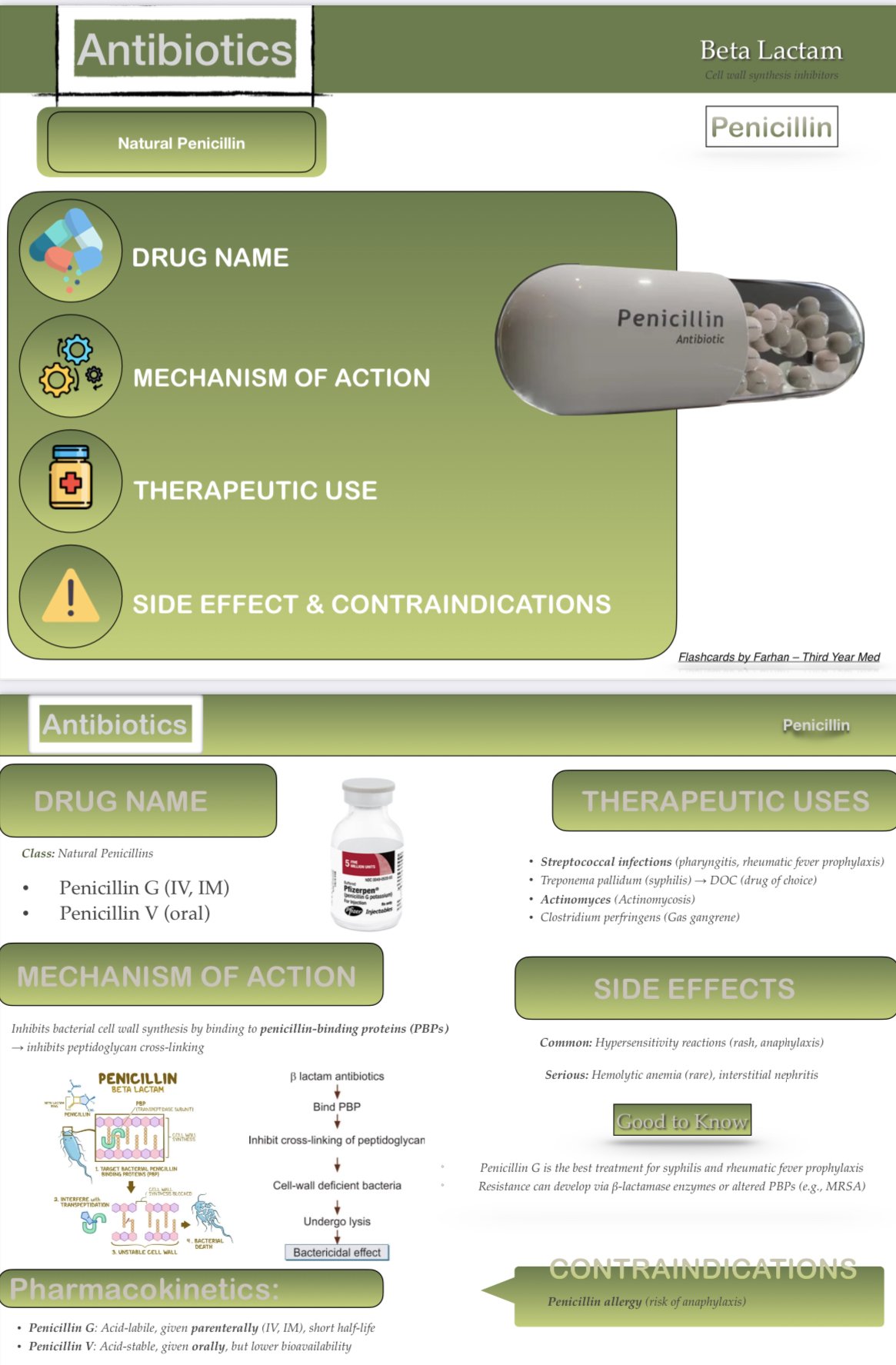 Welcome to our Antibiotics Flashcards section, designed to make your study of antimicrobial agents easier and more efficient. These flashcards cover the essential classes of antibiotics, their mechanisms of action, clinical uses, side effects, and key facts every medical student should know. Whether you’re preparing for exams or clinical practice, these flashcards provide a quick, organized, and high-yield review of antibiotics.