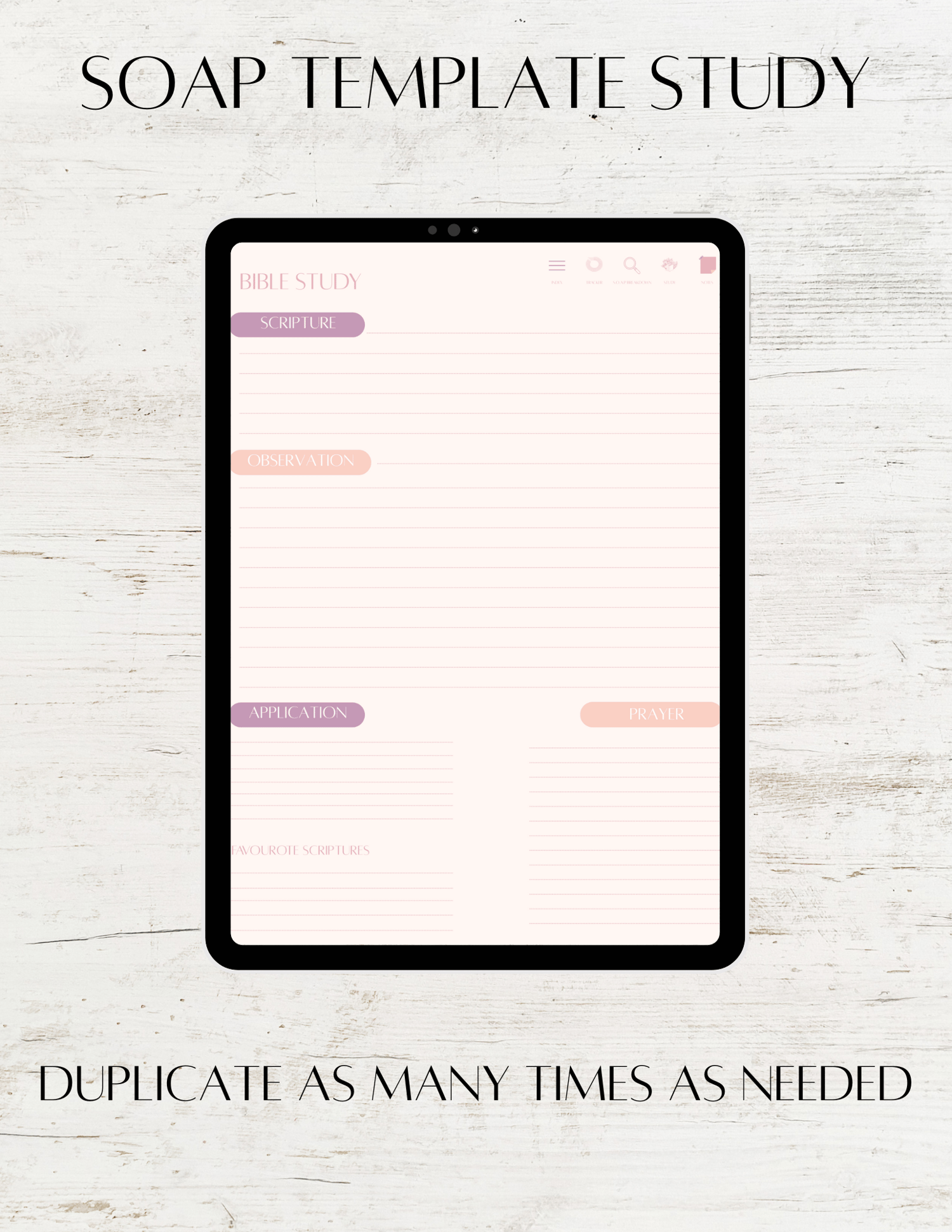 - Reusable Templates: Use the SOAP method templates as many times as you need for your Bible studies.