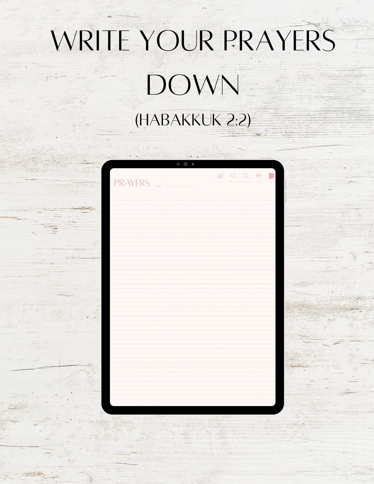 - Prayer Pages: Dedicated spaces to write down your prayers and track how God answers them.