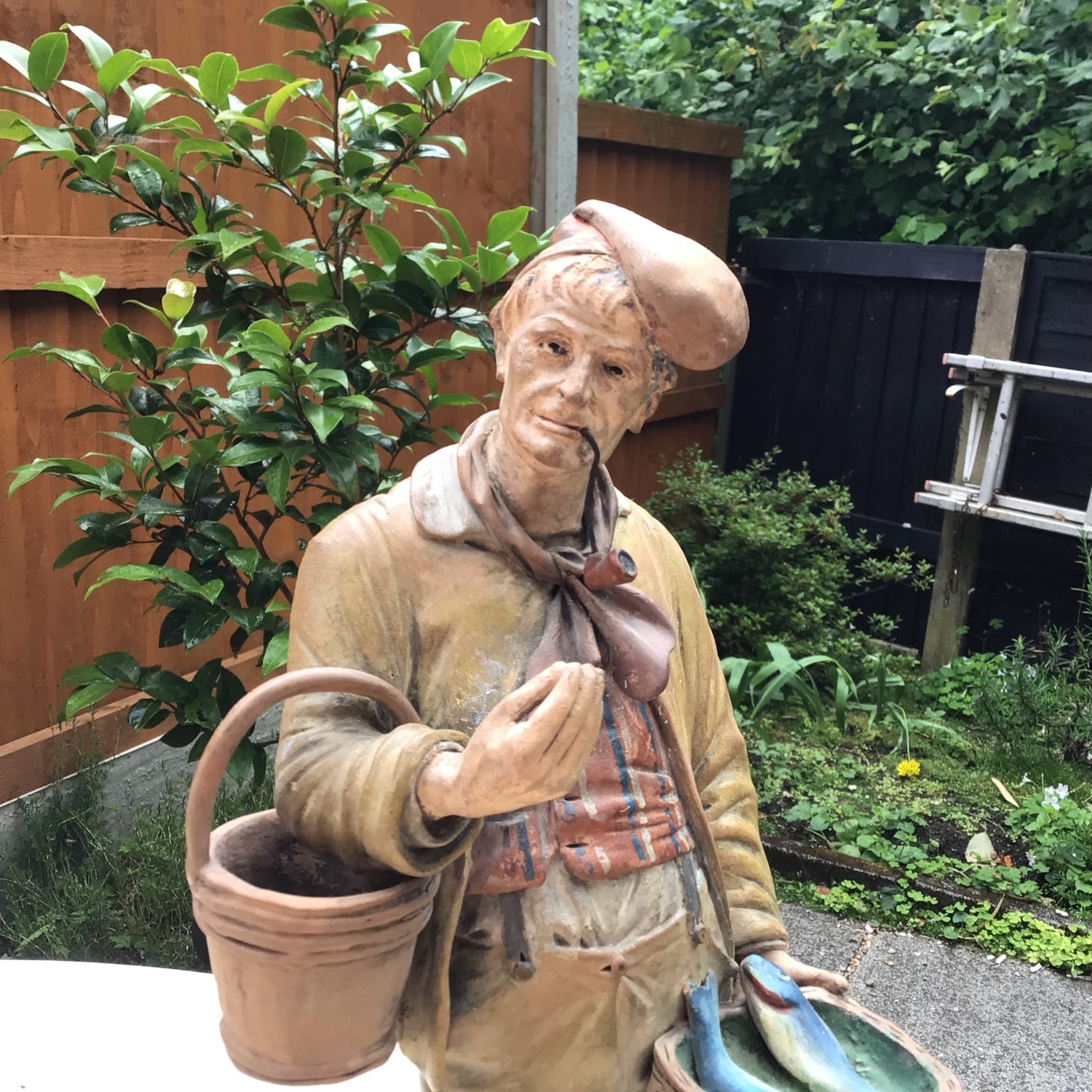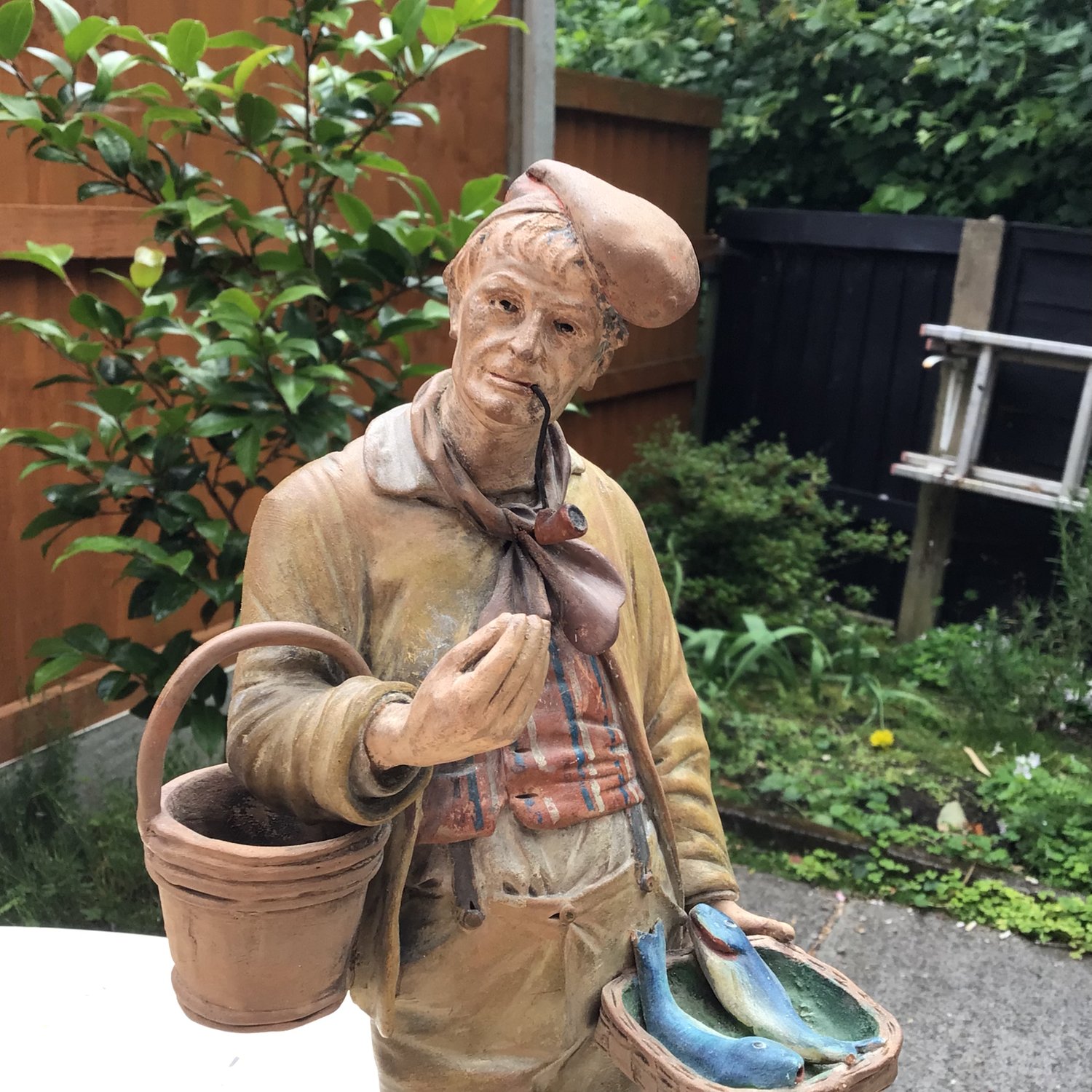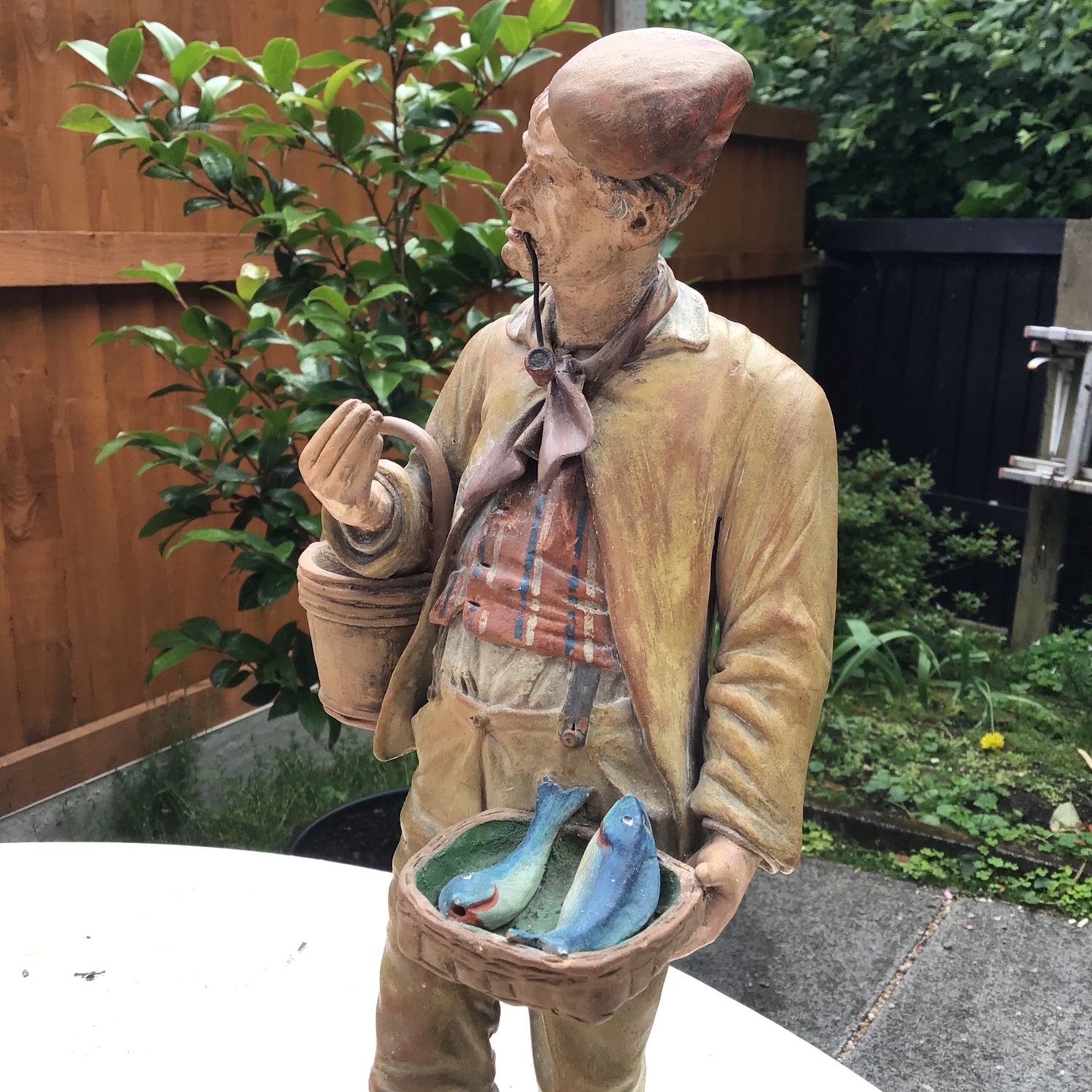 A 19c terracotta of a fish seller. 14.5 ins high. Some slight restoration, but pretty good overall. Probably northern France.