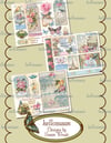 Create your own French inspired junk journal using La France! This kit features uplifting colors like french blue, teal and pink, which includes vintage-style designs with a variety of roses, cottage flowers, butterflies, birds, ribbons, french women and vintage graphic images with script & other design elements. Featured sentiments in english and french. Can be folded to create journal pages. Includes journal pages, journal cards, tags, an envelope, ephemera, background designed page and a tea dyed backer page .