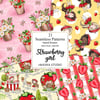 Strawberry Girl Hand Drawn Seamless Digital Papers