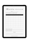 - Monthly Overview:Â Habit tracker, monthly review, monthly planning