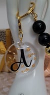 - Initial "A" Round Acrylic Keychain - Clear Acrylic Round Keychain with Gold Flecks with a Black Letter "A"