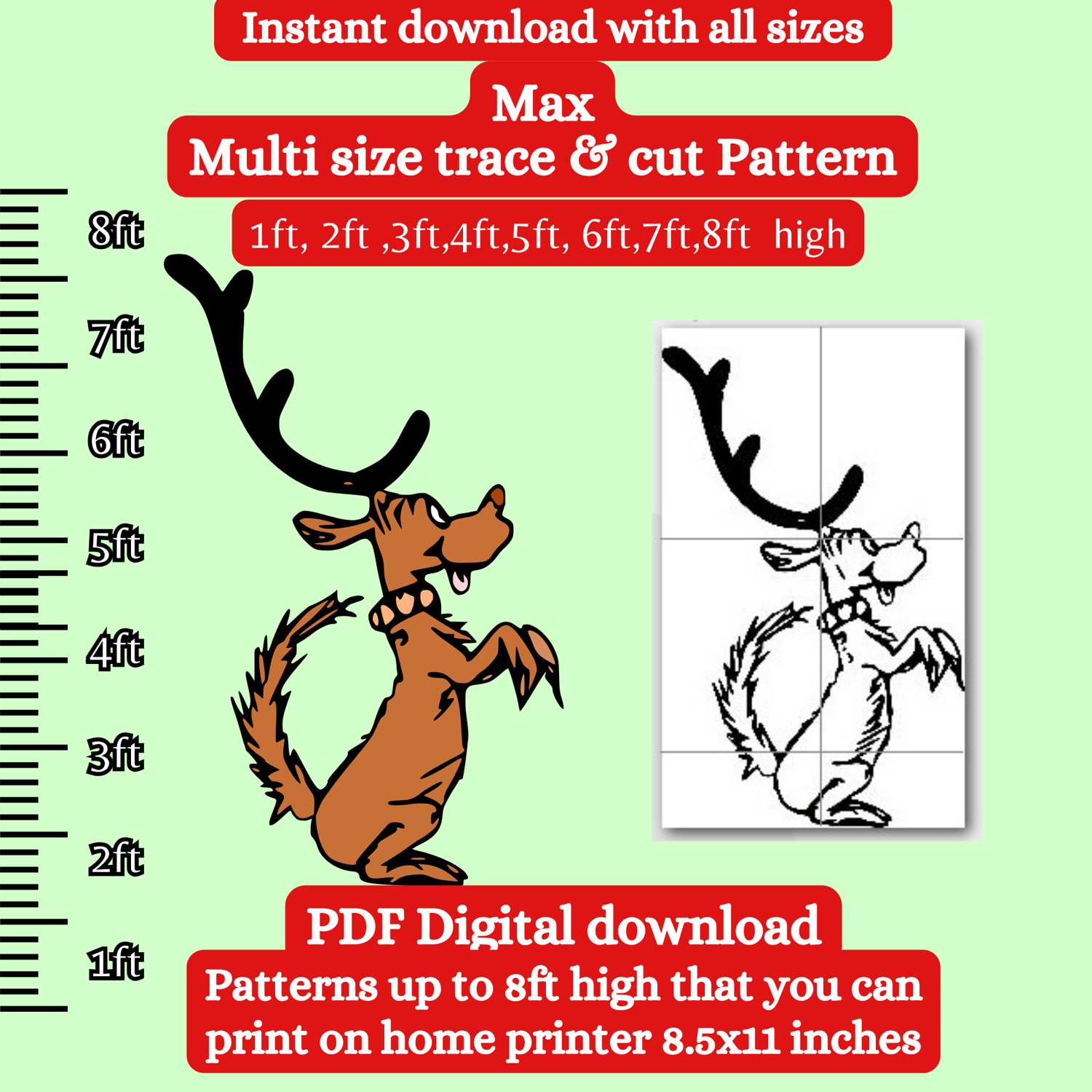 Whoville Max, mean one ,traceable pattern, 1ft 2ft 3ft 4ft, 5ft, 6ft 7ft 8ft, silhouette Template stencil pattern, Christmas village scene, print trace & cut pattern, Xmas yard art, trace and create Décor, D