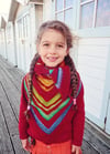 Finished Size of Shawl – 170cm (67 inches) on the longest edge & 71cm (28 inches) at the deepest point Note this size is changeable depending on the yarn weight, needle size and quantity of yarn you choose to use.