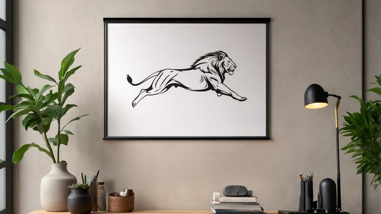 Black and White Running Lion Wall Art Printable – Bold Animal Art