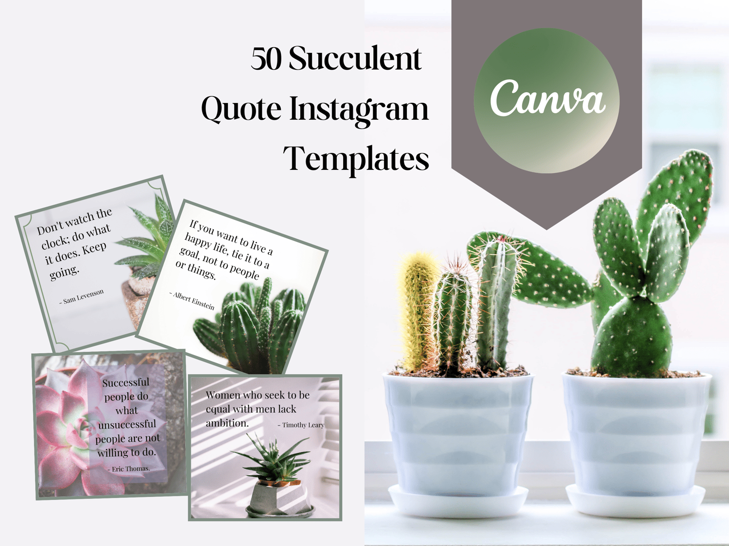 50 Succulent Themed Inspirational Quotes Instagram Editable Template Pack