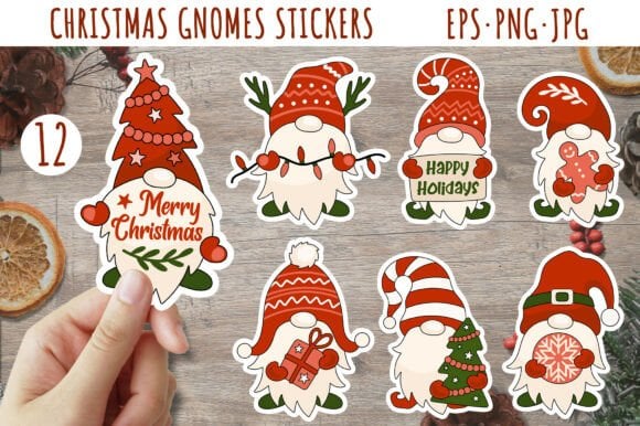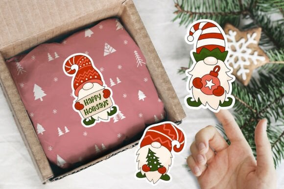 Christmas sticker bundle includes 7 sticker sets (8 sheets) – business and packaging stickers, Christmas gnome stickers, Christmas rainbow stickers, Christmas tree and decor stickers.