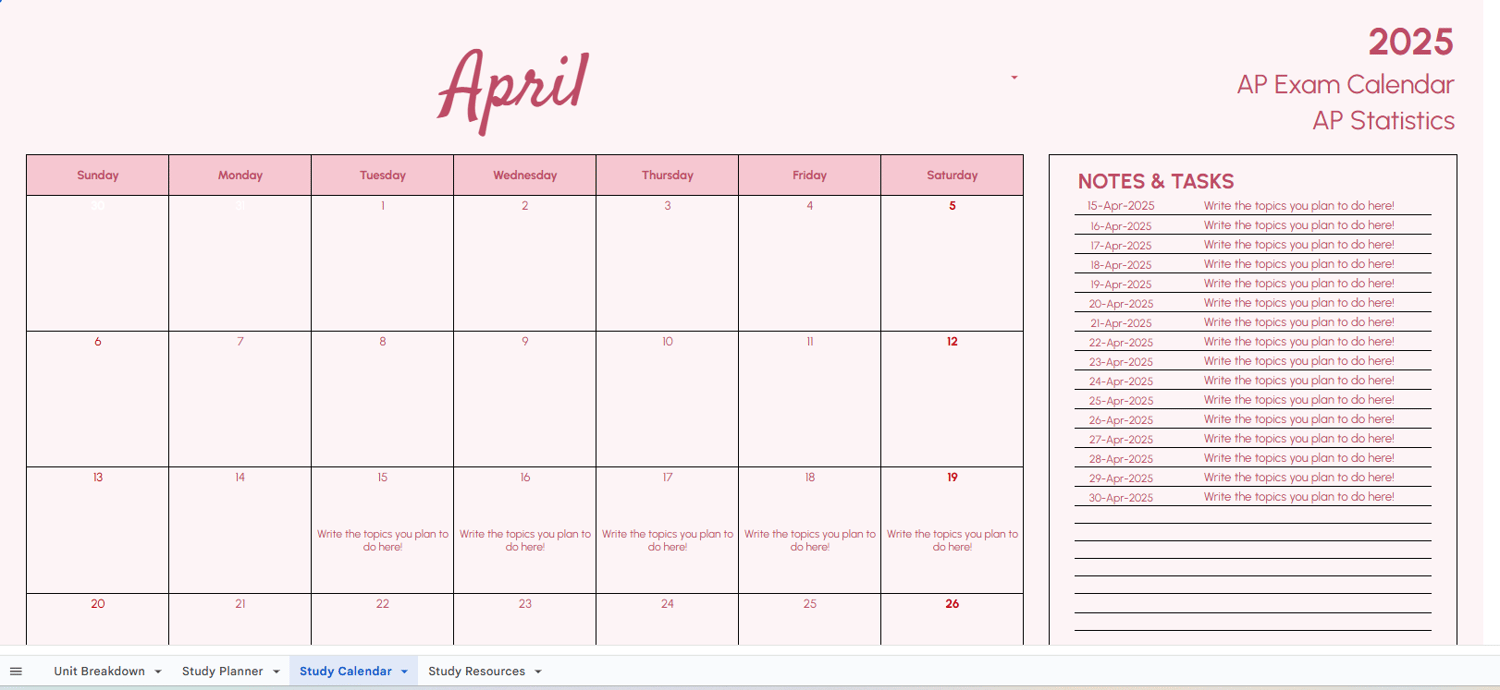 This planner is built with 4 organized tabs to guide your AP Statistics prep: