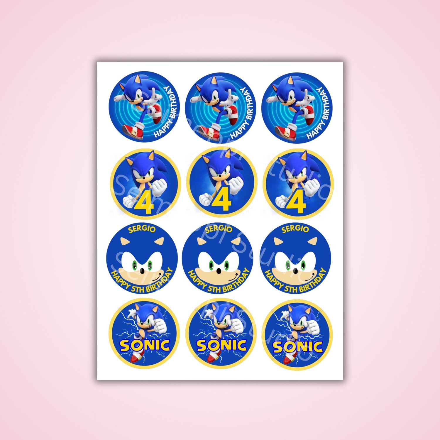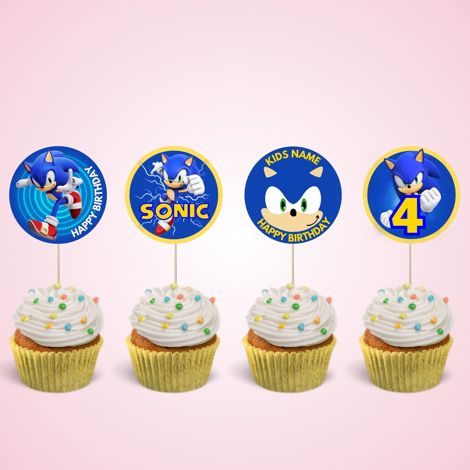 Sonic Cupcake Topper Editable Template, Instant Download