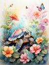 Bring charm and whimsy to your projects with the "Turtle Blooming Paradise Clip Art Bundle." This delightful set includes 8 high-quality JPG images featuring the adorable Turtle surrounded by lush watercolor flowers and playful butterflies. Perfect for scrapbooking, card-making, invitations, or adding a serene touch to digital designs. Please note that images have a white background and not a transparent background.