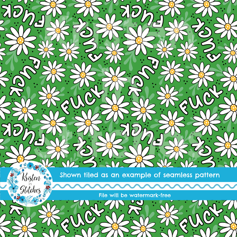F Words and Daisy Flowers Seamless Pattern, Pretty Profanities Fuck